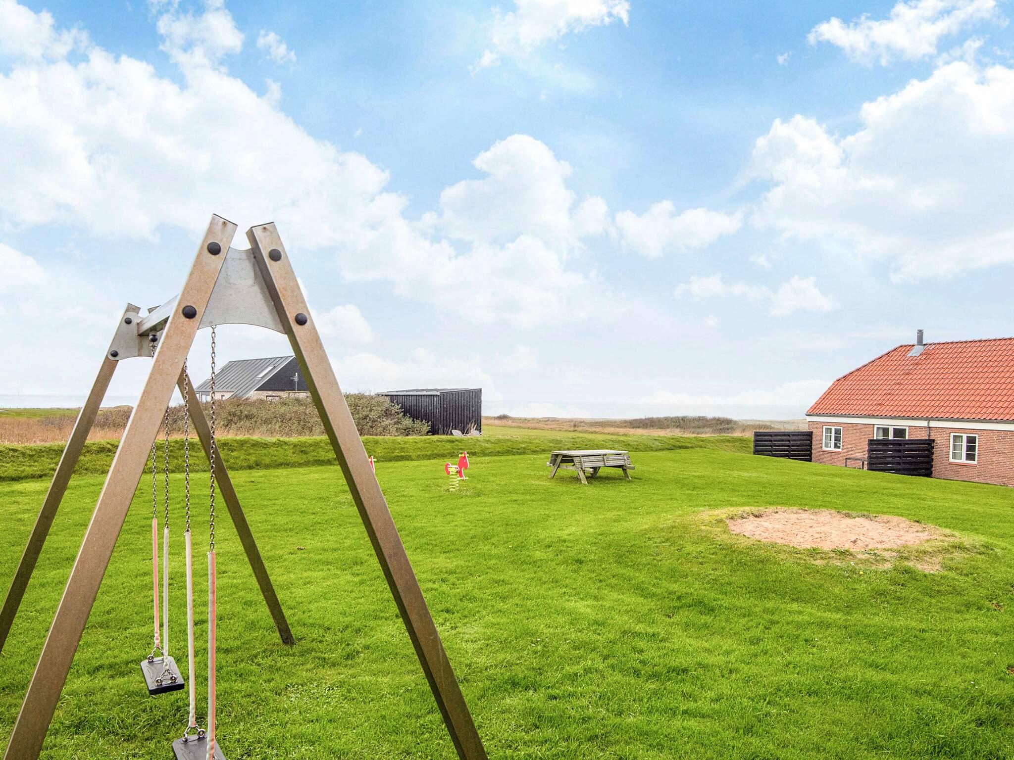 Velbeliggende rækkehus med panoramaudsigt over Vesterhavet kun ca. 200 meter fra huset. Husets aktiviteter giver rig mulighed for mange timers underholdning både for børn og voksne. Der er bl.a. billard, bordtennis, airhockey, bordfodbold samt udendørs dart mv. Huset er praktisk indrettet med åben køkken/stue. Stuen har moderne møblement samt 50" fladskærms-tv med internationale tv-kanaler (bl.a. danske, tyske, svensk, norsk + sport), dvd-afspiller, radio samt gratis internet. Der er brændeovn til en kølig sommeraften eller en efterårsaften med regn og rusk. Køkkenet er bl.a. udstyret med keramisk komfur, emhætte, mikroovn, opvaskemaskine samt kaffemaskine. Huset er energivenligt med varmepumpe og derved mulighed for lavere forbrug. Der er åben terrasse med gode havemøbler samt gasgrill, hvor I kan nyde aftensmaden, mens solen går ned over området. Området har egen legeplads.Har man el-bil eller en Plug-In hybrid, så er der ladestandere i Bovbjerg Strandpark i nærheden af huset. Ladestanderne er til Type 2 ladestik og kan lade op til 11 kWh.Udlejes ikke til ungdomsgrupper.