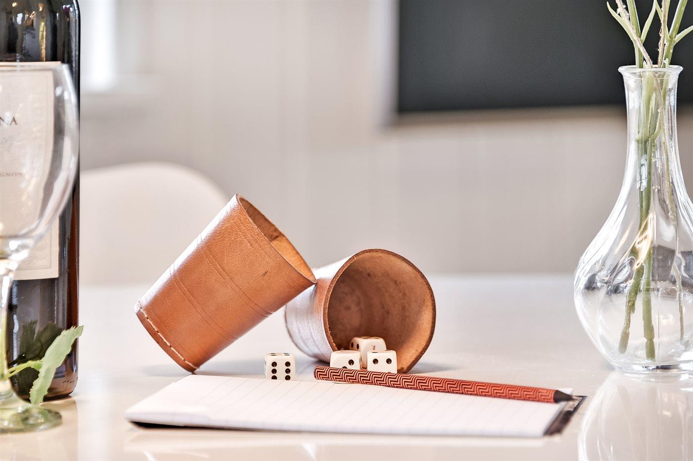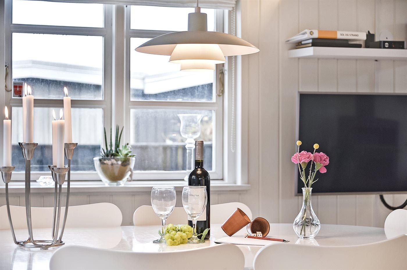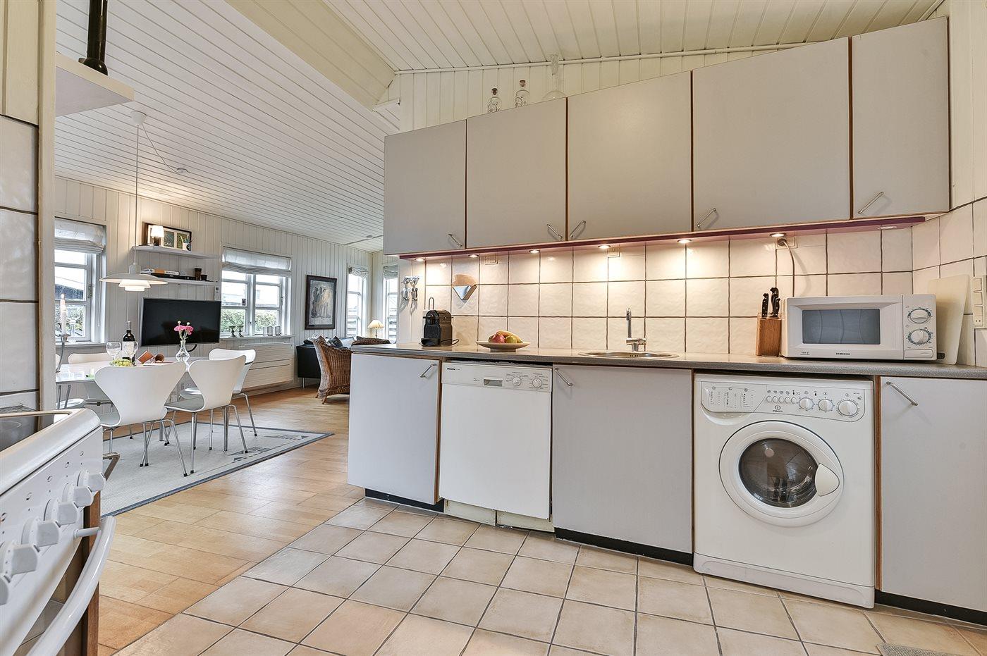 Køkkenet er udstyret med 1 køleskab. Der er 4 keramiske kogeplader, varmluftovn, mikrobølgeovn samt opvaskemaskine.
