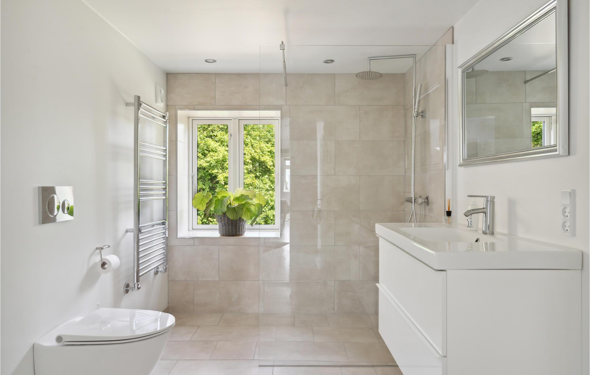 Badeværelse (nr. 1) - WC. Varmt og koldt vand. Bruser og badekar