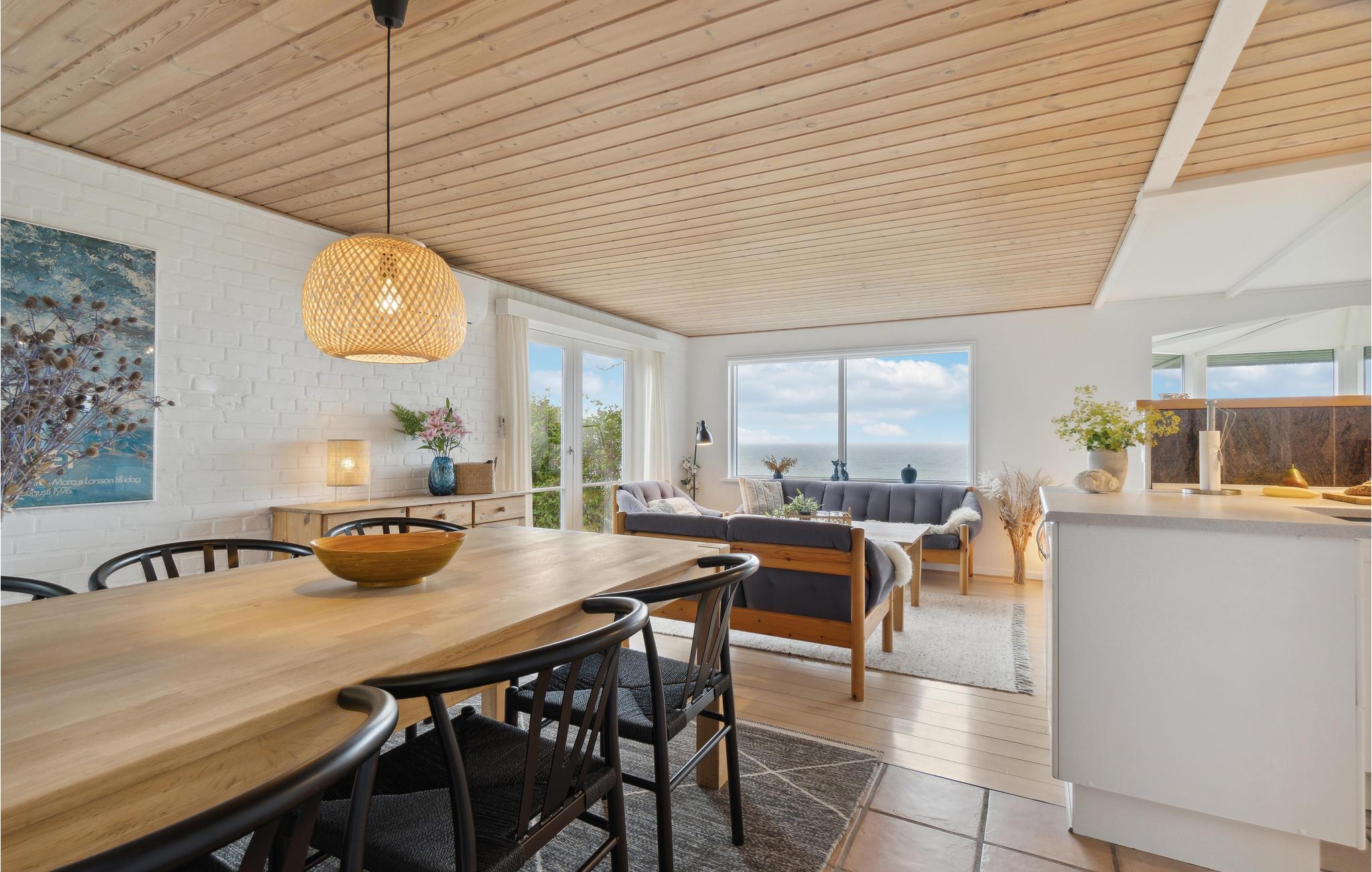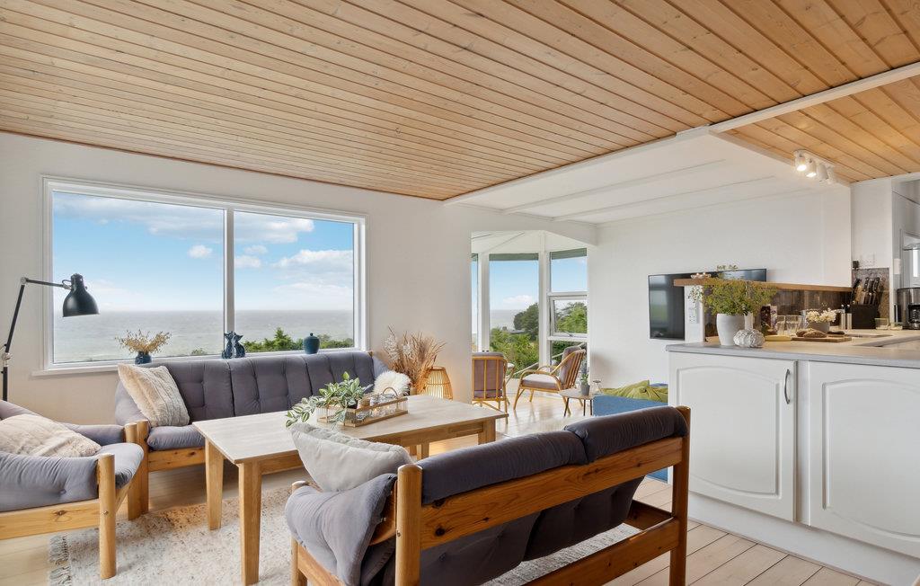 Ved kysten syd for Kerteminde byder denne perle af et feriehus jer velkommen blot 100 meter fra vandet. Husets smagfulde indretning og behagelige atmosfære får jer straks til at føle hjemme. Glæd jer til at vågne op hver dag til den flotteste udsigt og lad jer inspirere af den ved måltiderne rundt om det flotte spisebord. Blandt husets højdepunkter finder I den lille glasdækkede udbygning i stuen, hvor I kommer til at tilbringe mange timer med ferielæsningen eller bare nyde den fabelagtige udsigt over havet. Efter en herlig feriedag og et godt måltid kan I læne jer tilbage i sofaen og se en god film eller samles om et hyggeligt brætspil.