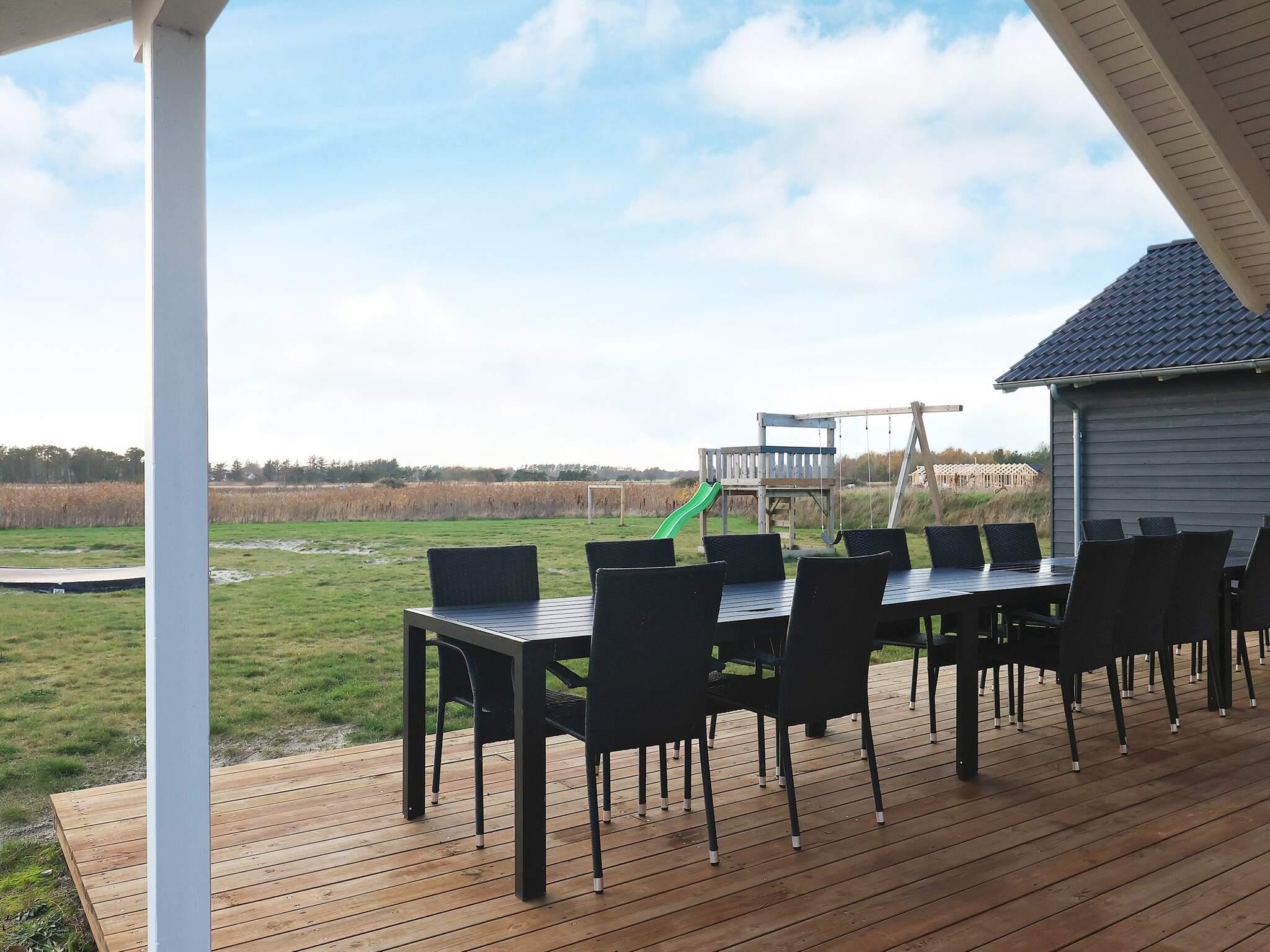 På grunden er der legetårn, gynge, sandkasse og trampolin (benyttes på eget ansvar/forsikring). Mod øst og vest er der dejlige terrasser med gode havemøbler, hvor I kan nyde solen og have hyggelige grillaftener.