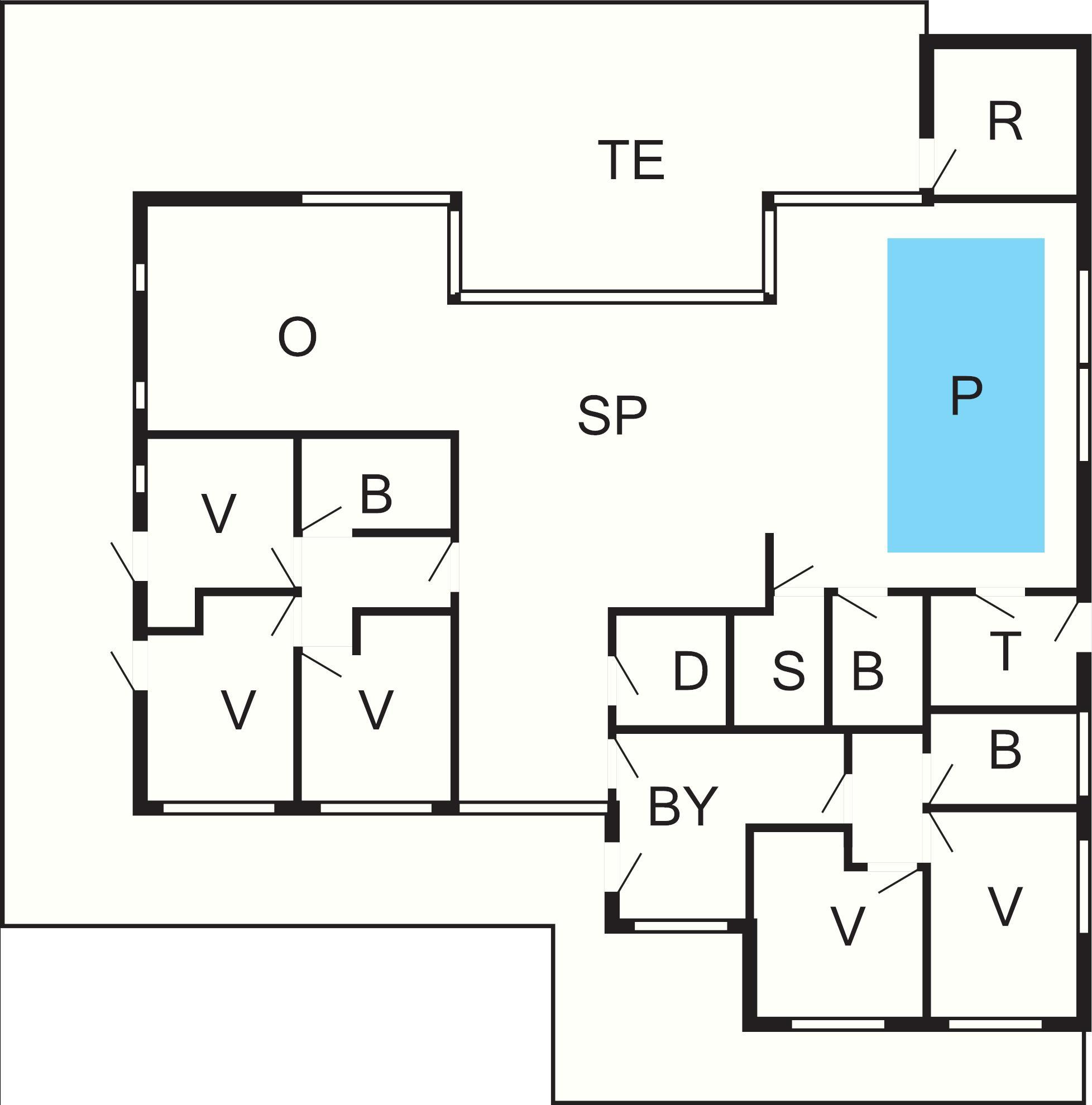 Hvis vejret tillader det, er der direkte adgang fra det store køkken/alrum til sommerhusets store 260 kvm terrasse (70 kvm er overdækket), som omkranser huset og har to udendørs brusere, hvor man kan tage en forfriskende skylning efter en dejlig dukkert i poolen. Der er varmt vand i den udendørs bruser. Efter et behageligt bad under den udendørs bruser kan man med fordel hoppe i husets udendørs spa (kapacitet til 6. pers.) og slappe af og nyde følelsen af velvære med et koldt glas bobler. Huset ligger på en stor grund med træer.