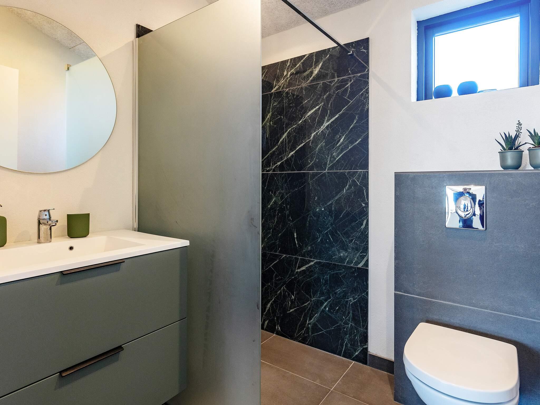 Feriehuset er moderne indrettet, smagfuldt indrettet med fokus på at skabe en hyggelig sommerhusstemning. Den har fire soveværelser udstyret med gode senge og skabsplads. To badeværelser med bruser og gulvvarme samt bryggers med både vaskemaskine og tørretumbler.