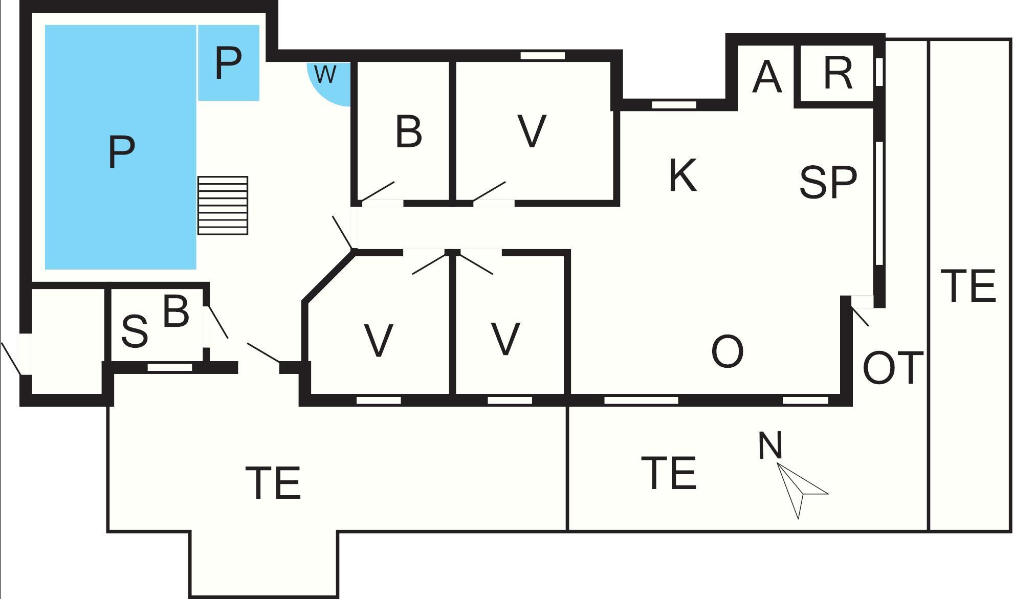 Sommerhusets poolafdeling indeholder både stor swimmingpool, stort spabad og sauna med plads til 4 personer. Swimmingpoolen er på 15 m² og med rutschebane til børnene samt en børnepool. Der er luft/vand varmepumper, som sørger for minimale omkostninger til opvarmning i poolafdelingen.