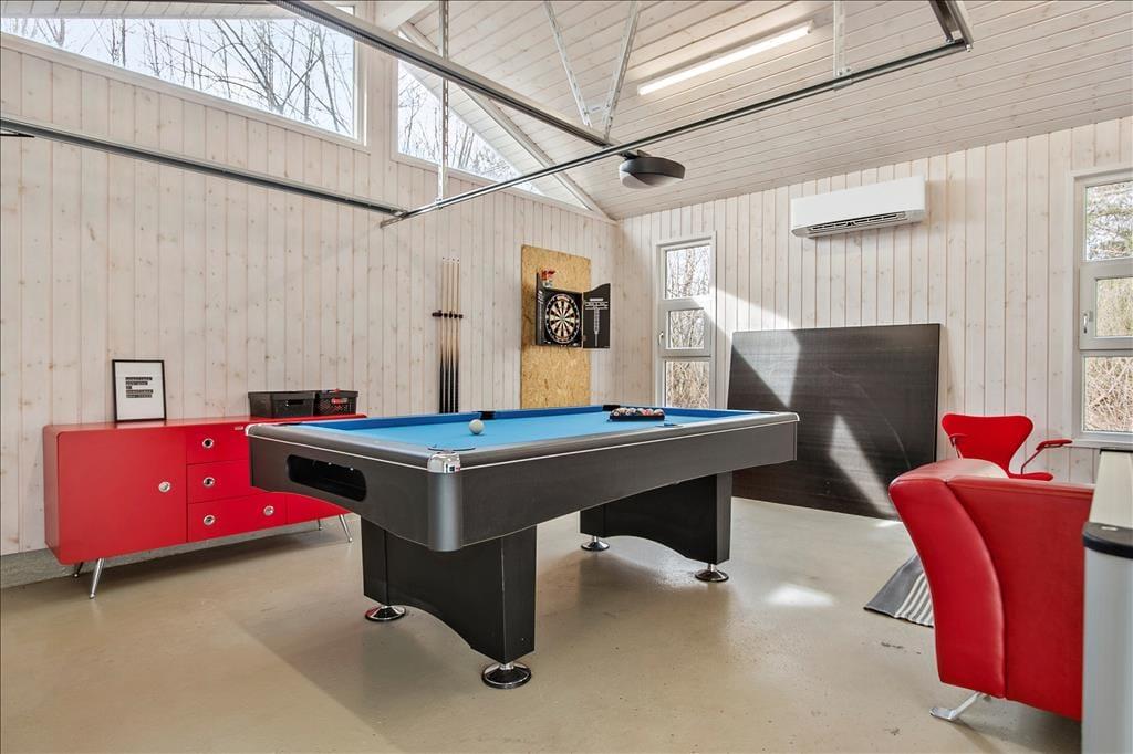 Sommerhuset byder dig velkommen med en lys og luftig indretning, der straks får dig til at føle dig hjemme. Den rummelige stue er indrettet med komfortable møbler og et åbent køkken, så I kan være sammen om madlavningen, mens I stadig nyder hinandens selskab. En stor poolafdeling sætter prikken over i’et, hvor hele familien kan tage en forfriskende dukkert eller slappe af i det varme vand. Aktivitetsrummet med poolbord sikrer underholdning for alle aldre, uanset om I er til konkurrenceprægede spil eller bare vil hygge jer sammen. Med flere soveværelser og det hyggelige anneks er der plads til både store og små at finde ro og komfort efter en lang dag med oplevelser.
