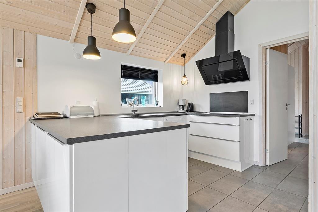 Sommerhuset er indrettet med fokus på hygge og komfort. De store vinduespartier sikrer et skønt lysindfald, og den åbne planløsning skaber en behagelig atmosfære. Det veludstyrede køkken ligger i åben forbindelse med opholdsstuen, hvor der er god plads til både afslapning og fælles måltider. Med to badeværelser er huset ideelt til både par og familier, der sætter pris på ekstra komfort.