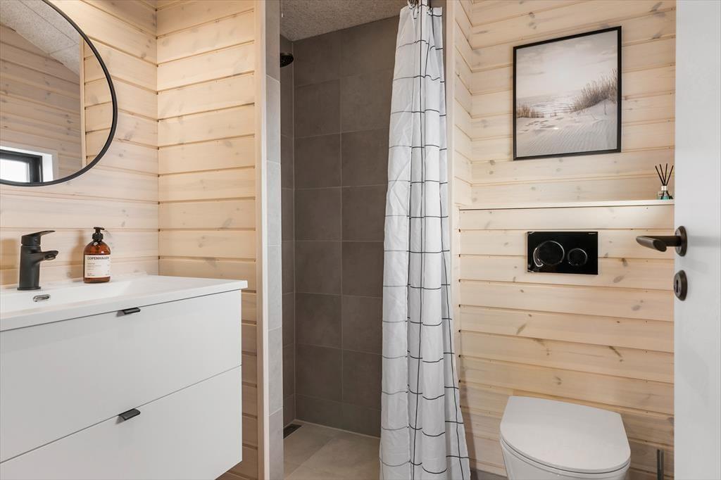 Der er virkelig taget højde for, at du og de andre feriegæster skal få det dejligt her i huset: Alle rum er lyse og velindrettede, og ikke bare udsigten til naturen, men også indeklimaet er fantastisk. Et smukt køkken ligger i åben forbindelse med stuen, så du kan nyde de indendørs hyggestunder i nærheden af dine kære – også selvom nogle af jer er i gang med aftensmaden og andre spiller spil, leger eller løser krydsogtværser. Når det er ved at være sengetid, har I tre gode soveværelser at fordele jer på. Planløsningen byder også på to badeværelser, og alt i alt passer huset glimrende til syv personer.