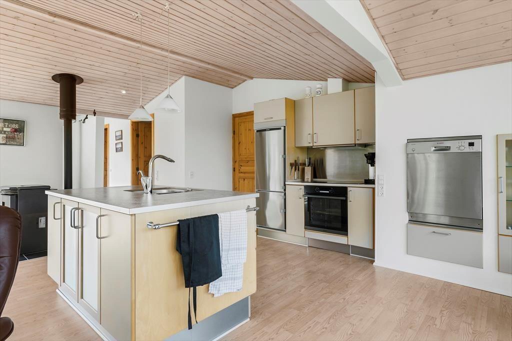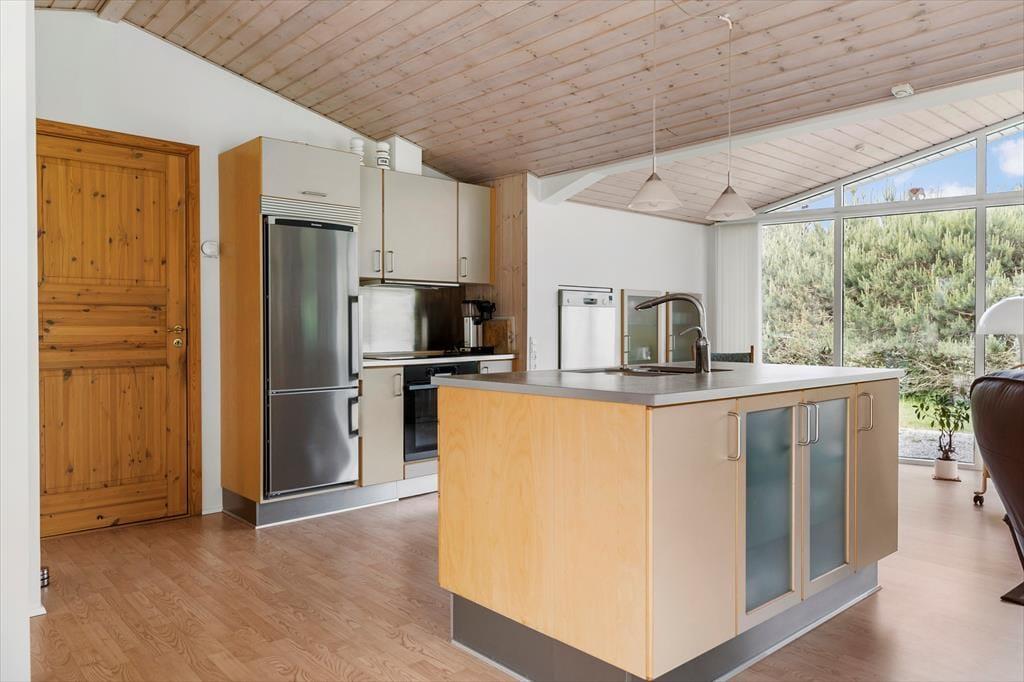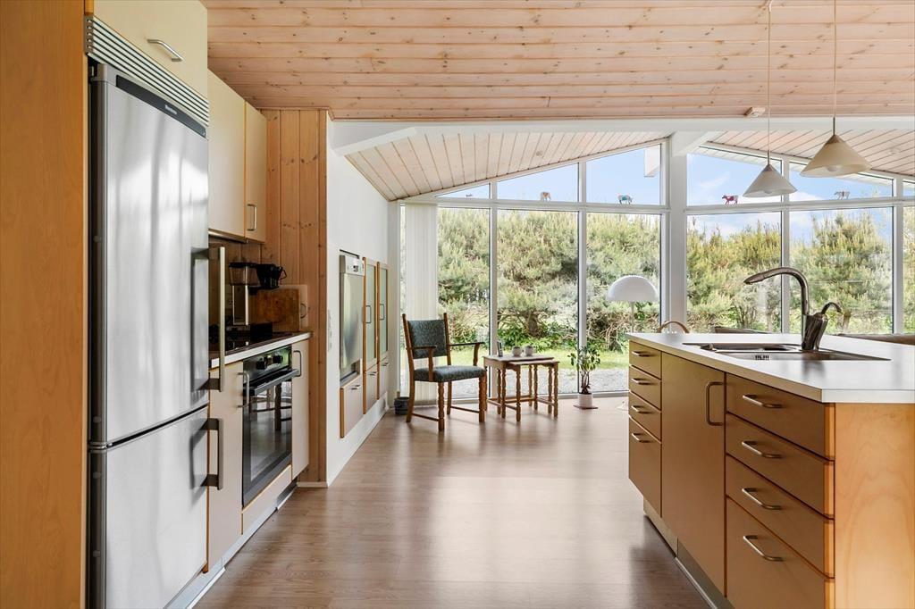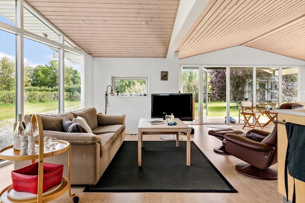 På grund af den attraktive beliggenhed er det oplagt at tilbringe en stor del af ferien på stranden – men det er nu også nemt at finde på gode grunde til at hygge sig inden døre i det 95 m2 store sommerhus. De store vinduer inviterer solen indenfor og giver udsigt til havens grønne frodighed, så selv når du og dine kære spiller spil, bager kage eller læser bøger nær brændeovnen, kan I stadig nyde omgivelserne. Stue og køkken udgør tilsammen et skønt opholdsrum, og planløsningen byder derudover på to gode soveværelser og et pænt brusebadeværelse. Alt i alt en skøn og rummelig feriebolig, der nemt kan rumme fire personer.