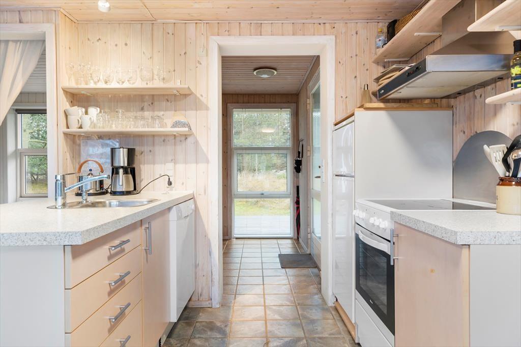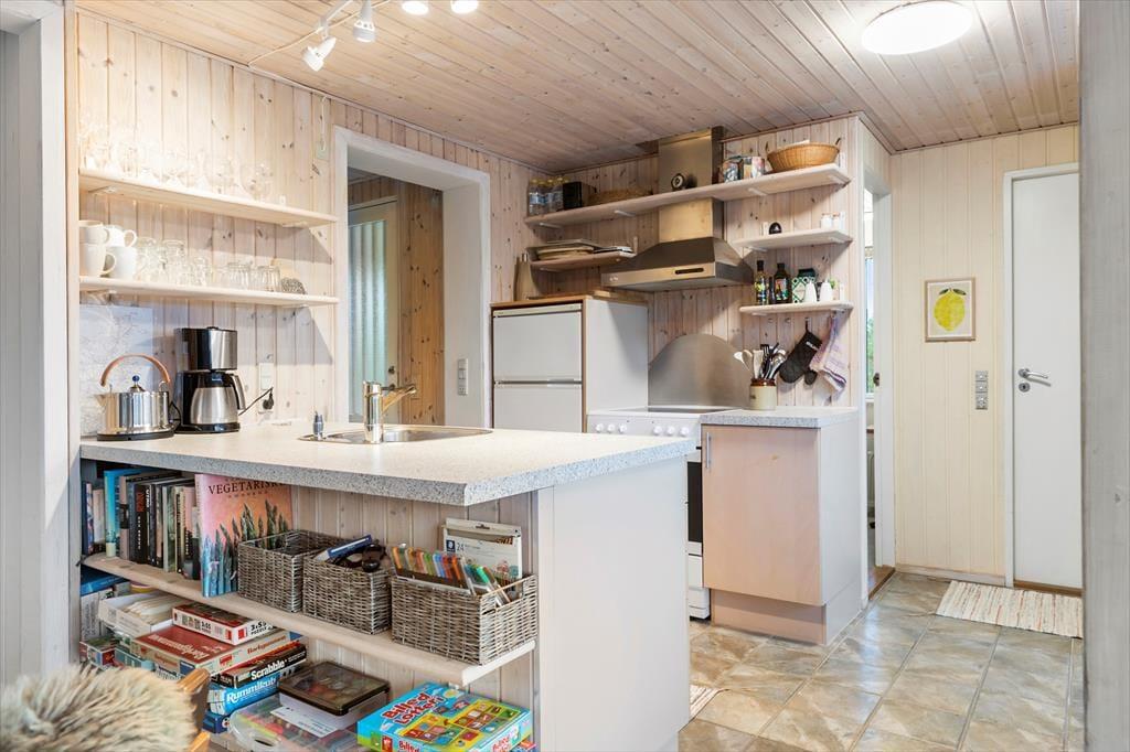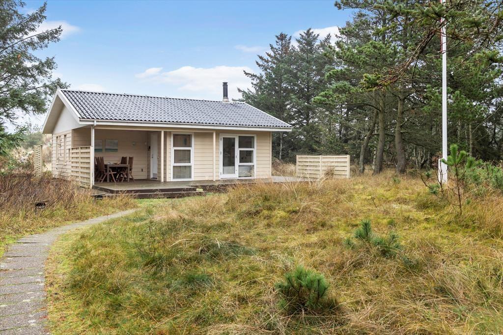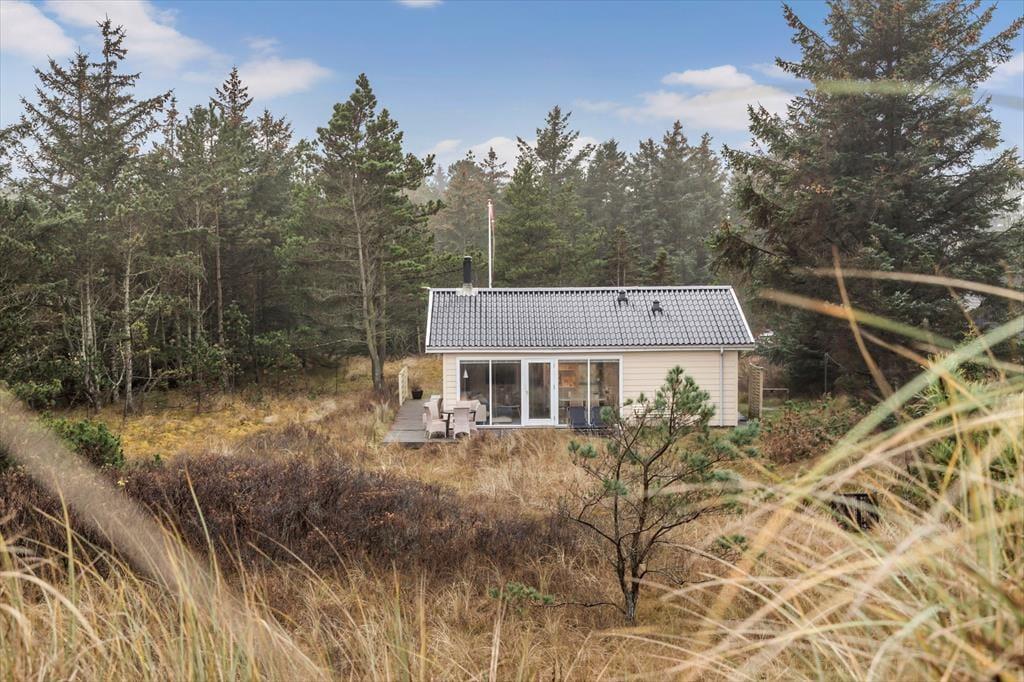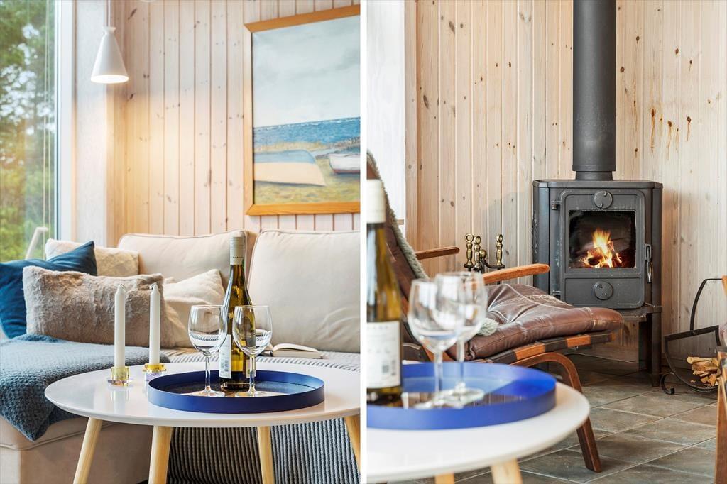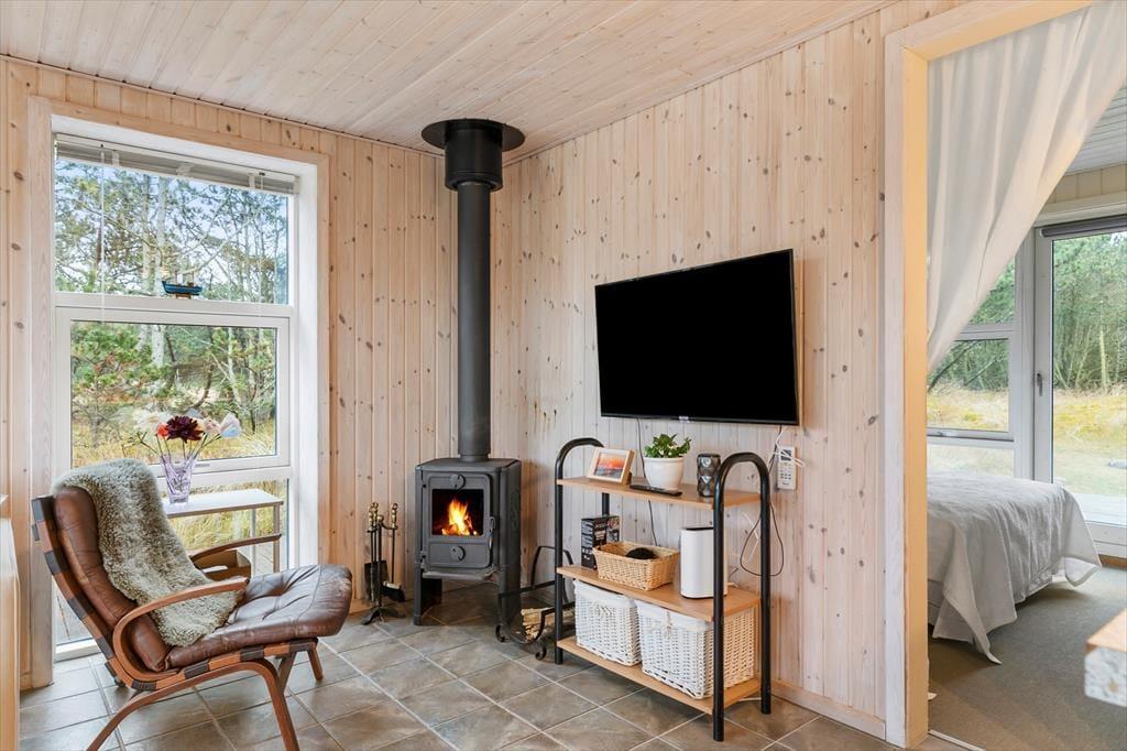 Dette hyggelige sommerhus byder dig indenfor i en lys og indbydende atmosfære, hvor du straks føler dig hjemme. Den rummelige stue er indrettet med komfortable møbler og en brændeovn, der inviterer til afslappede stunder på kølige aftener. Køkkenet ligger i åben forbindelse med stuen, så samtaler og samvær kan fortsætte, mens maden tilberedes. Sommerhuset er designet med fokus på ro og hygge, og værelserne giver plads til afslapning og en god nattesøvn. Badeværelset tilbyder et friskt morgenbad, og som en ekstra luksus kan du også skylle sand og saltvand af dig under den udendørs bruser – perfekt efter en tur på stranden.