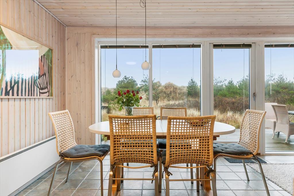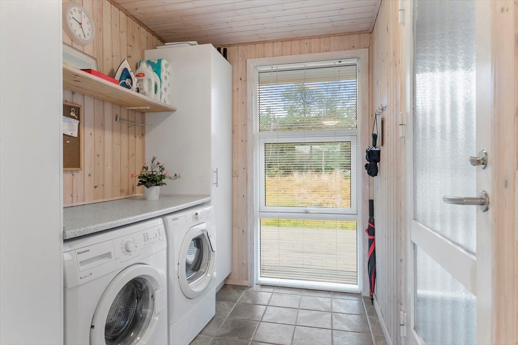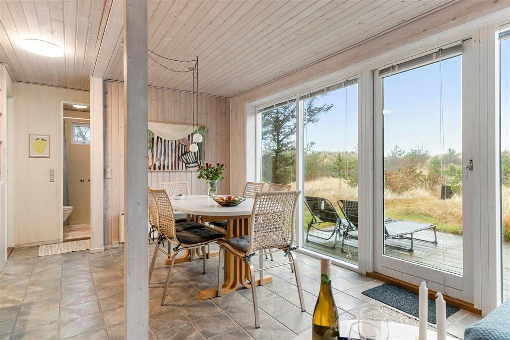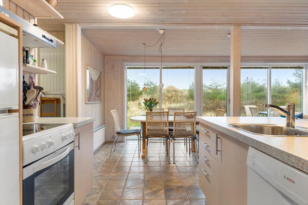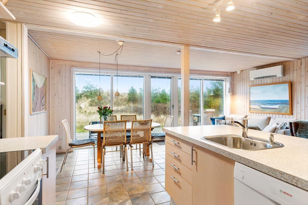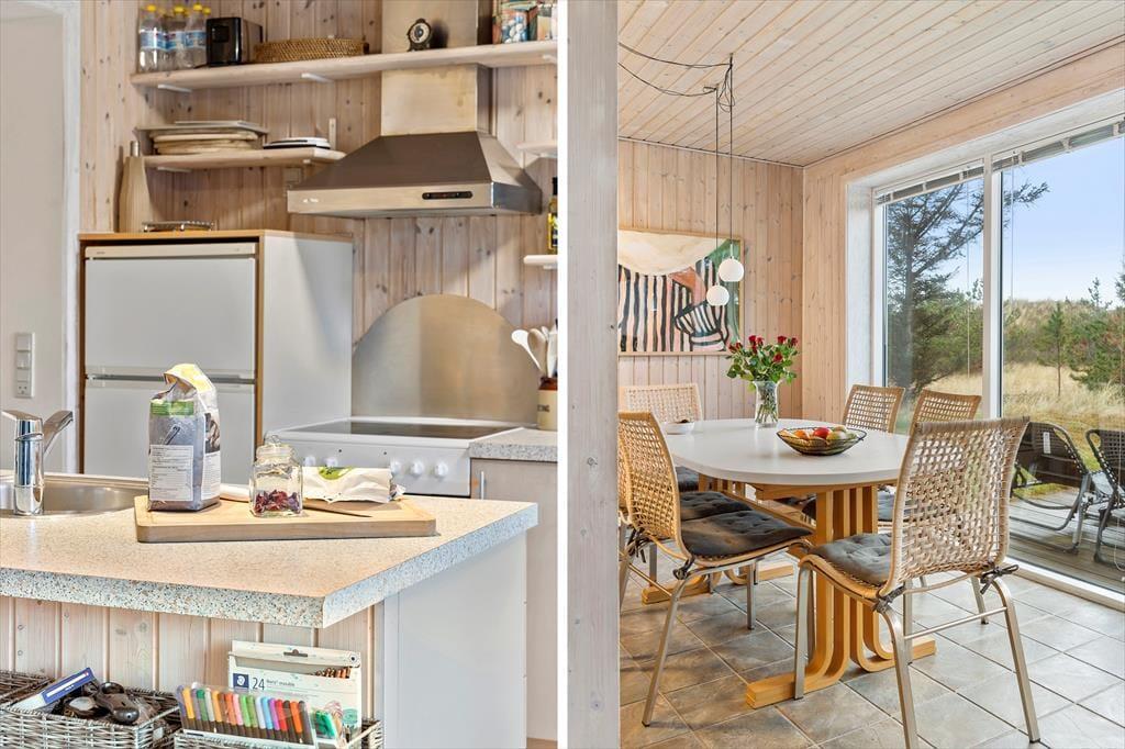 Dette hyggelige sommerhus byder dig indenfor i en lys og indbydende atmosfære, hvor du straks føler dig hjemme. Den rummelige stue er indrettet med komfortable møbler og en brændeovn, der inviterer til afslappede stunder på kølige aftener. Køkkenet ligger i åben forbindelse med stuen, så samtaler og samvær kan fortsætte, mens maden tilberedes. Sommerhuset er designet med fokus på ro og hygge, og værelserne giver plads til afslapning og en god nattesøvn. Badeværelset tilbyder et friskt morgenbad, og som en ekstra luksus kan du også skylle sand og saltvand af dig under den udendørs bruser – perfekt efter en tur på stranden.