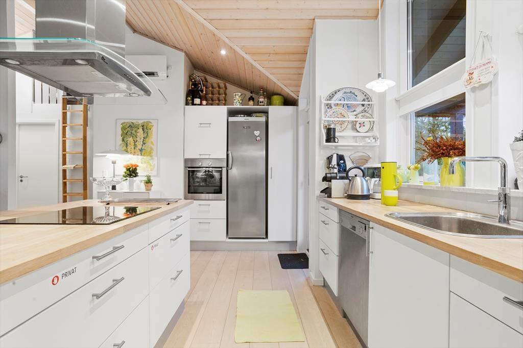 Indenfor møder du et sommerhus, der med sit moderne design og personlige præg hurtigt får dig til at føle dig hjemme. Det veludstyrede køkken er et naturligt samlingspunkt, hvor du kan udforske dine kulinariske evner med hjælp fra faciliteter som quooker, airfryser og et dedikeret vinkøleskab. Mens maden simrer, kan samtalerne flyde frit mellem køkken og stue, som smelter sammen i en åben og lys opholdsafdeling. Her kan du krybe sammen foran brændeovnen med en god bog eller nyde en filmaften i sofaen efter en lang dag med oplevelser. Det rummelige sommerhus tilbyder også rolige soveværelser og to gode badeværelser, hvor hele familien kan slappe af.