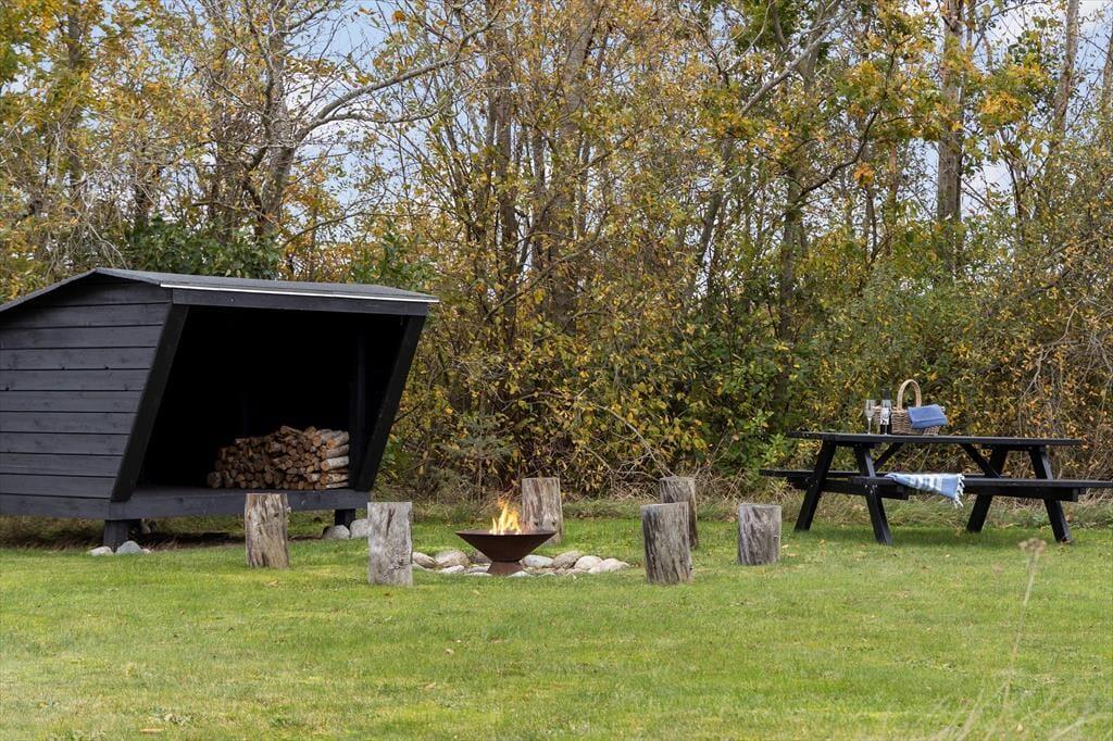 Udenfor venter en sand oase af velvære og afslapning. Den store træterrasse indbyder til udeliv fra morgen til aften – her kan du starte dagen med en dukkert i udebruseren, nyde middagsmaden under det overdækkede terrasseområde og runde dagen af i det boblende udendørs spa under den åbne himmel. Med plads til seks personer er spaen det oplagte sted at koble helt af, mens solen går ned over trætoppene. Haven er stor, grøn og indrammet af natur, så du altid kan finde et roligt hjørne til at læse en bog eller bare lytte til fuglelivet omkring dig. For de eventyrlystne byder grunden også på et hyggeligt shelter, hvor du kan overnatte under stjernerne, og en bålplads, hvor familien kan samles til aftenhygge med skumfiduser og gode historier. Når sulten melder sig, kan grillen tændes, og duften af sommer og kulgrill spreder sig i den lune aftenluft.