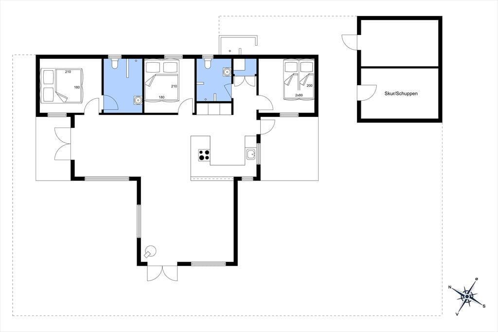 Når du træder indenfor i sommerhuset, mødes du af en elegant og harmonisk atmosfære, hvor alt er indrettet med sans for kvalitet og æstetik. Det rummelige opholdsrum med stue og køkken i ét samler hele huset og giver masser af plads til både samvær og afslapning. Her kan du nyde duften af friskbrygget kaffe, mens morgensolen strømmer ind gennem de store vinduer, eller I kan samles omkring spisebordet til lange, hyggelige feriemiddage. Det moderne køkken giver de bedste rammer for kulinariske udfoldelser, og de to stilfulde badeværelser med gulvvarme sikrer ekstra komfort i hverdagen. De tre soveværelser er indrettet med komfortable senge og rolig atmosfære – ideelt for både børnefamilier og voksne, der søger fred og velvære efter en dag i naturen. Og når aftenen falder på, kan I slå jer ned i sofaen og nyde en film på fladskærmen, hvor både danske, tyske og nordiske kanaler samt streamingtjenester som Netflix og Disney+ står klar til at underholde.