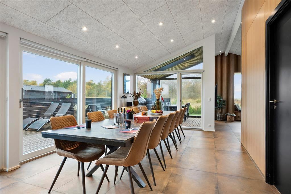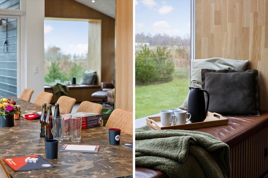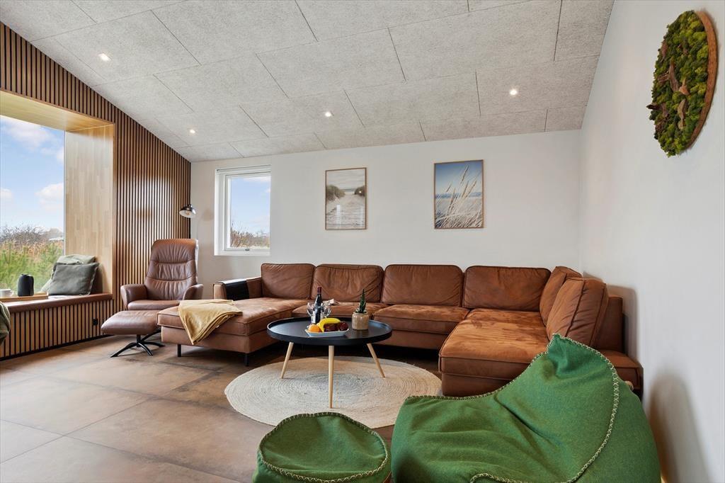 Når du træder ind i sommerhuset, mærker du straks den lyse og luftige stemning, der kendetegner huset. Det store, åbne opholdsrum er husets naturlige samlingspunkt – her smelter stue og køkken sammen i et moderne og funktionelt design, hvor alle kan samles om madlavning, måltider eller hyggelige aftener med spil og film. De store vinduespartier inviterer det særlige nordjyske lys indenfor og giver udsigt til den grønne natur, mens den gode akustik og den gennemtænkte indretning skaber ro og balance i rummet. Indretningen er moderne og smagfuld med fokus på komfort og kvalitet. I de fire soveværelser er der tænkt på gode senge og skabsplads, og de to flotte badeværelser har både gulvvarme og vaskefaciliteter, så ferien bliver så bekvem som muligt. Hele huset er desuden godt isoleret, hvilket betyder lave energiudgifter og et behageligt indeklima året rundt.