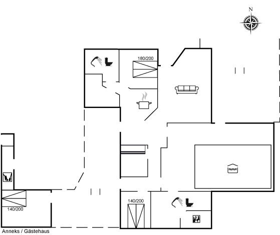 Der er i alt 4 soveværelser. Sovepladserne fordeler sig på: 6 sovepladser i dobbeltsenge. 2 sovepladser i køjeseng. 2 af disse sovepladser befinder sig i et anneks. Derudover er der 1 stk. barneseng.