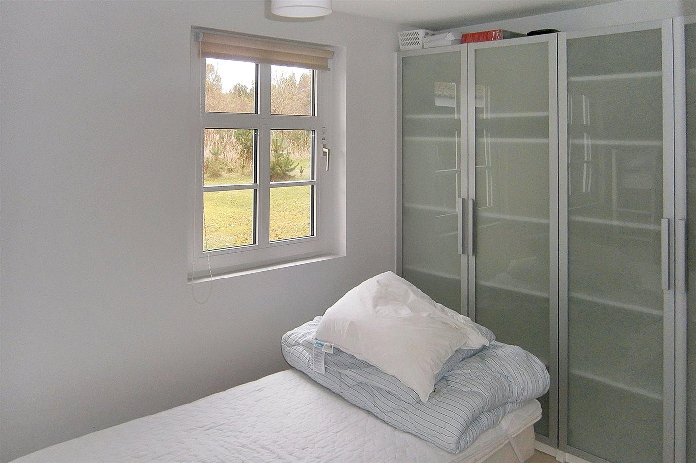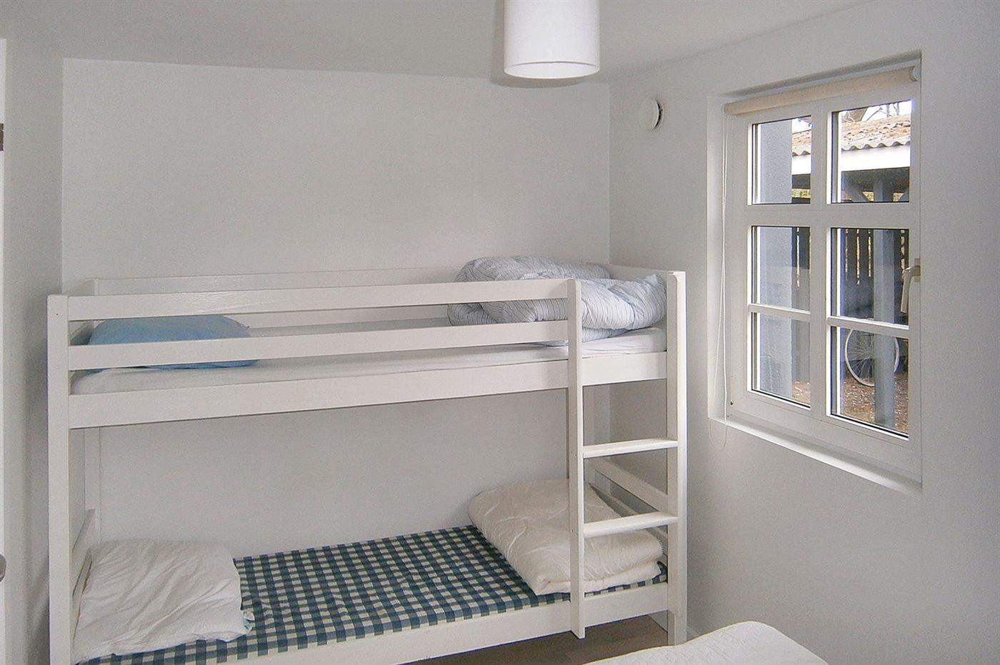 Der er i alt 2 soveværelser. Sovepladserne fordeler sig på: 2 sovepladser i dobbeltseng. 1 soveplads i enkeltseng. 2 sovepladser i køjeseng. Derudover er der 1 stk. barneseng.