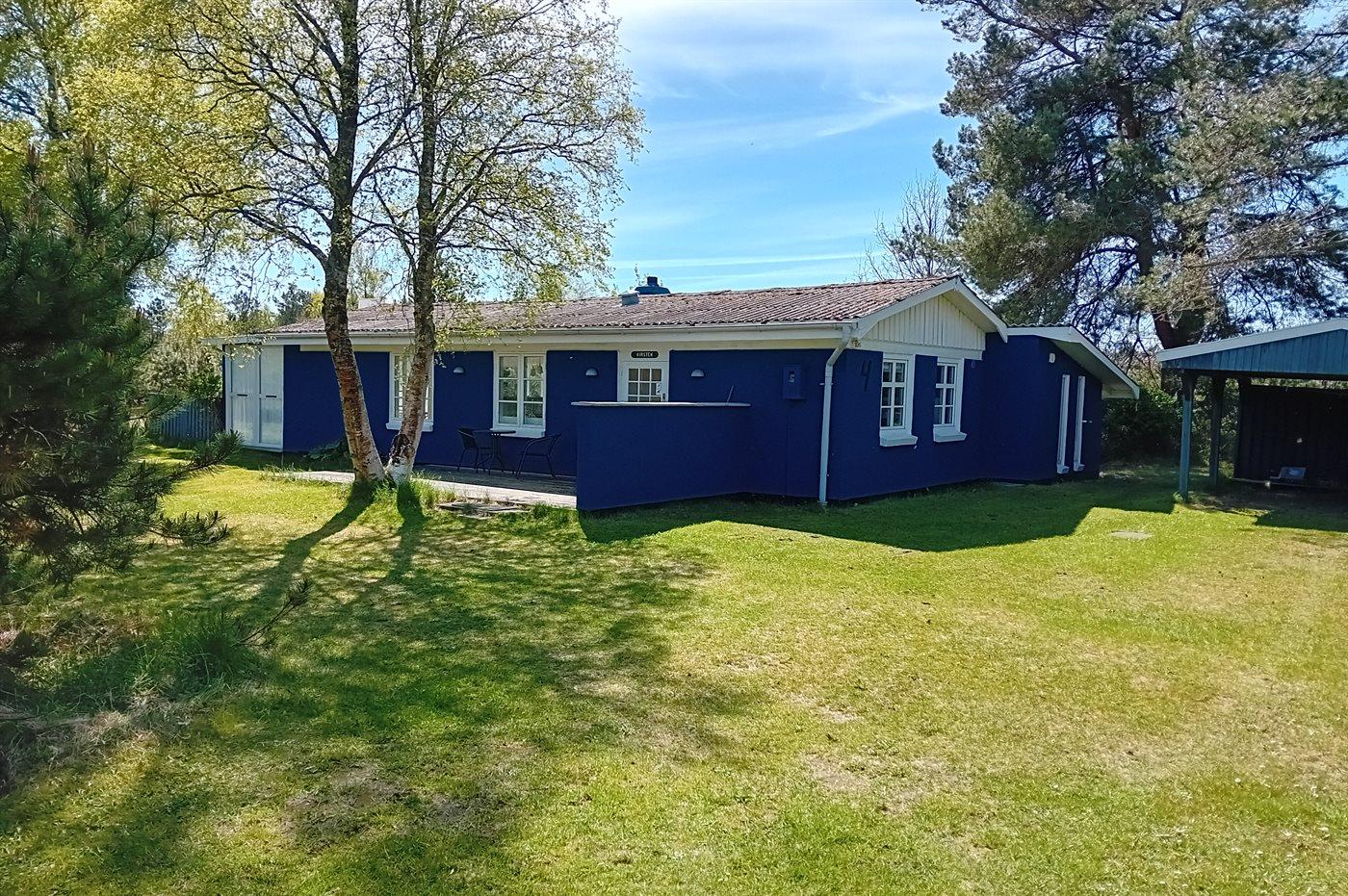 Ferieboligen er beliggende på en 2500 m² stor naturgrund. Der er 400 m til havet. Nærmeste forretning er beliggende i en afstand af 1200 m. Til ferieboligen hører 45 m² terrasseareal. Gasgrill til rådighed. Der er carport til rådighed. Parkering ved ferieboligen.