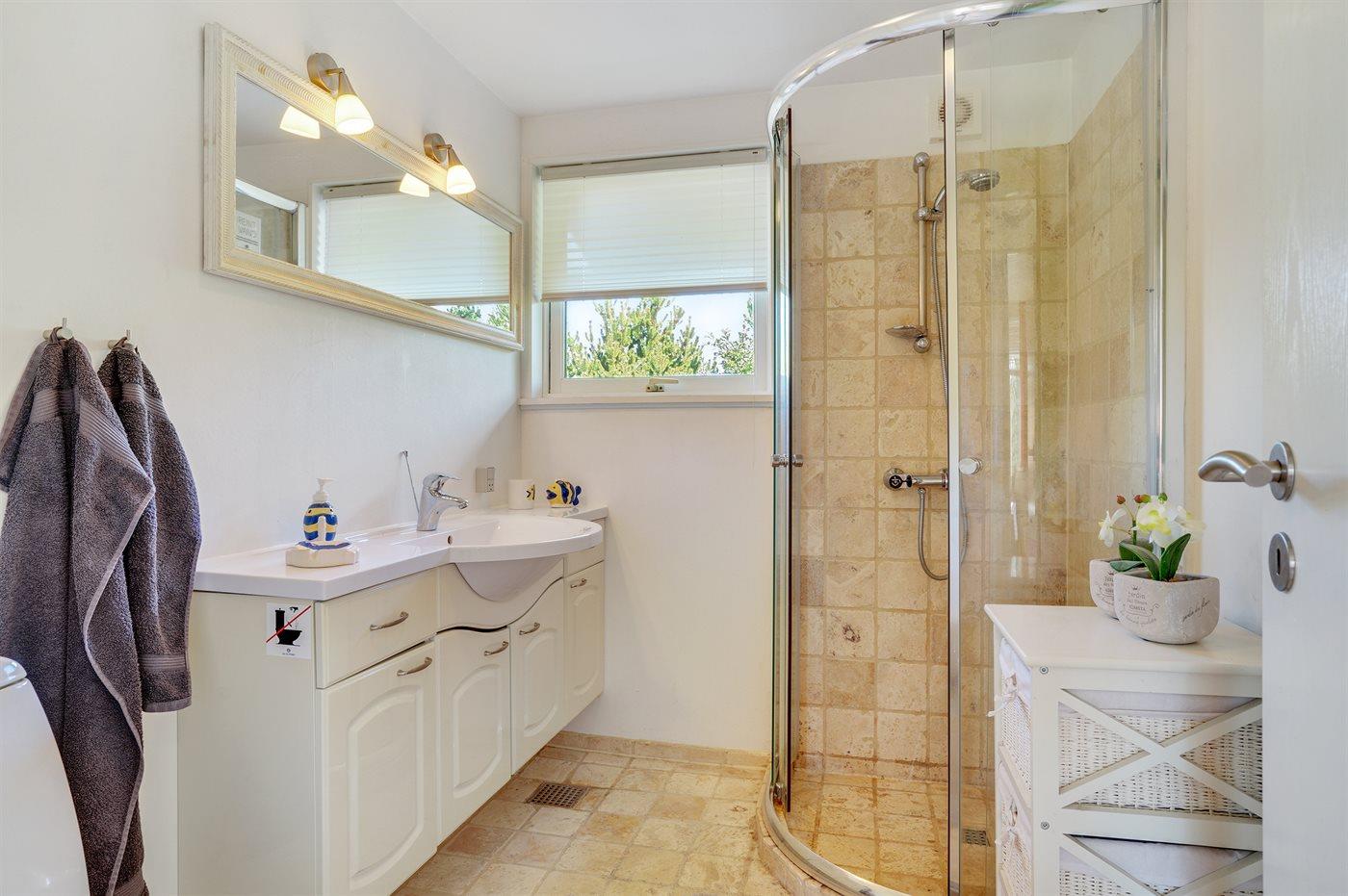 Der er 1 badeværelse med bruseniche og 1 toilet.