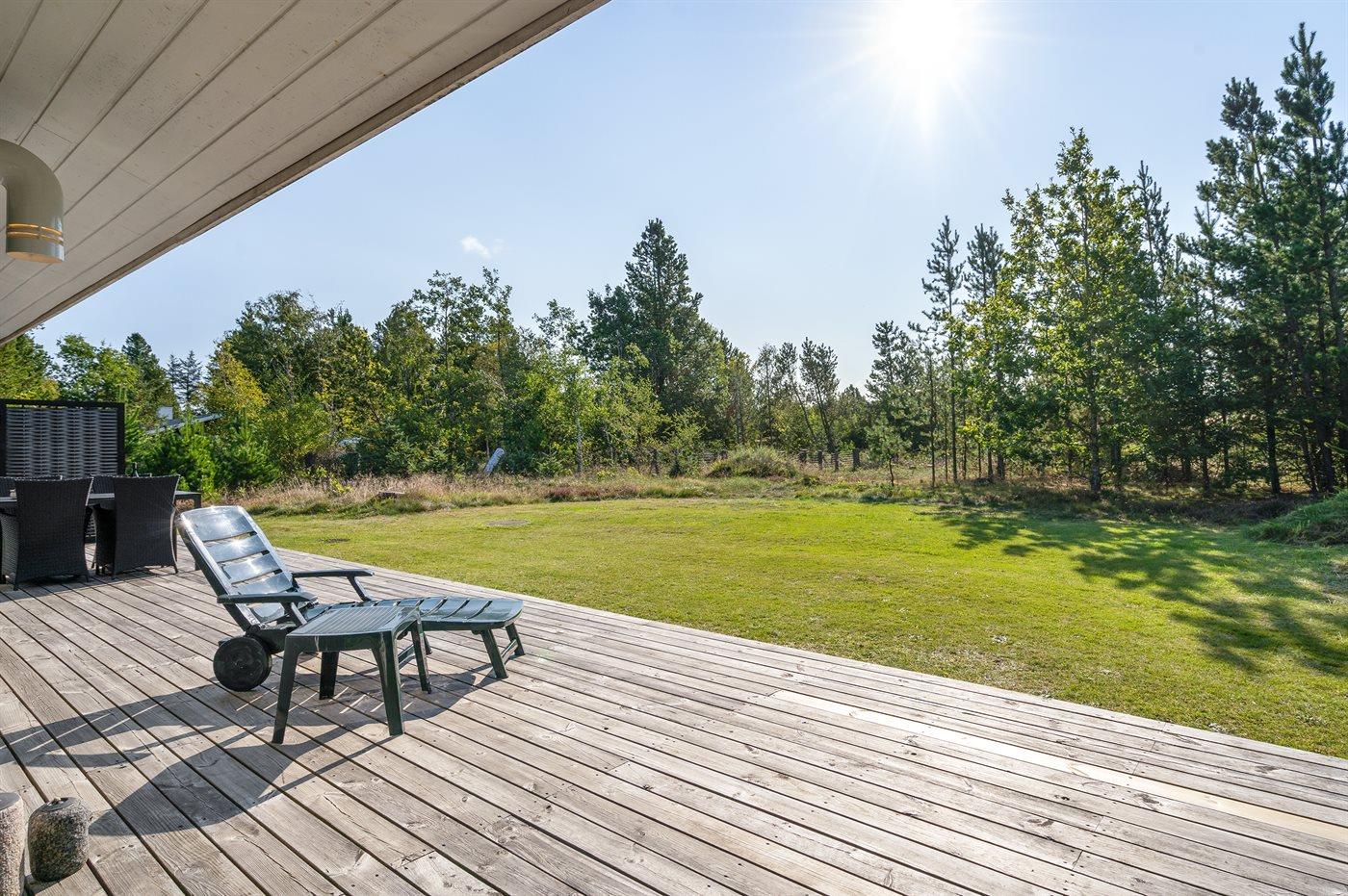 Ferieboligen er beliggende på en 2500 m² stor naturgrund. Der er 100 m til havet. Nærmeste forretning er beliggende i en afstand af 50 m. Til ferieboligen hører 60 m² terrasseareal. Ligeledes er der adgang til udestue. Parkering ved ferieboligen.