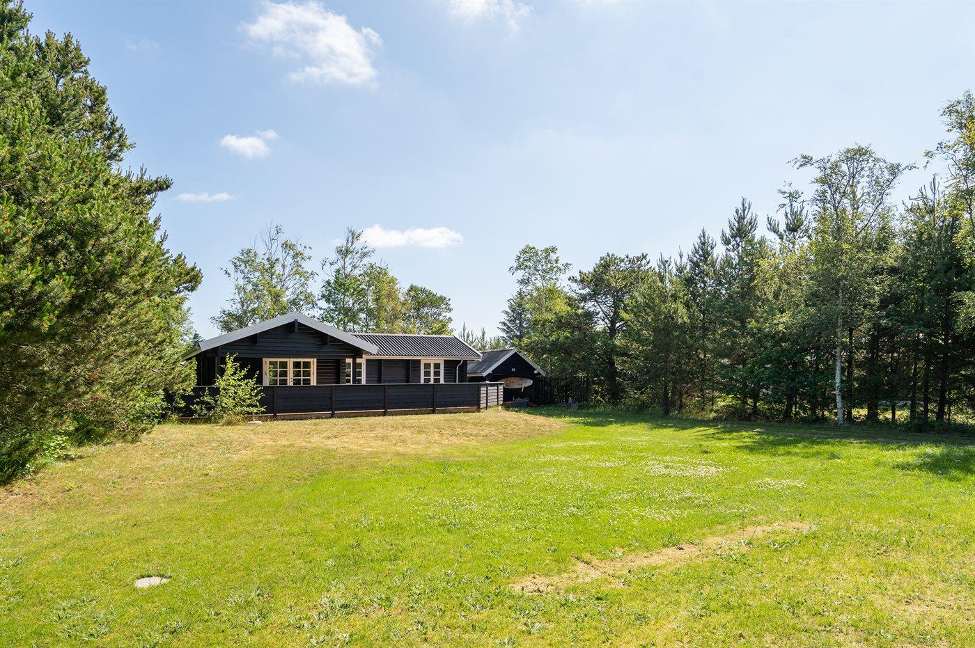 Ferieboligen er beliggende på en 2500 m² stor naturgrund. Der er 200 m til havet. Nærmeste forretning er beliggende i en afstand af 800 m. Til ferieboligen hører 70 m² terrasseareal. Desuden er der 10 m² overdækket terrasse. Der findes 1 kuglegrill og 2 gasgrill. Parkering ved ferieboligen.