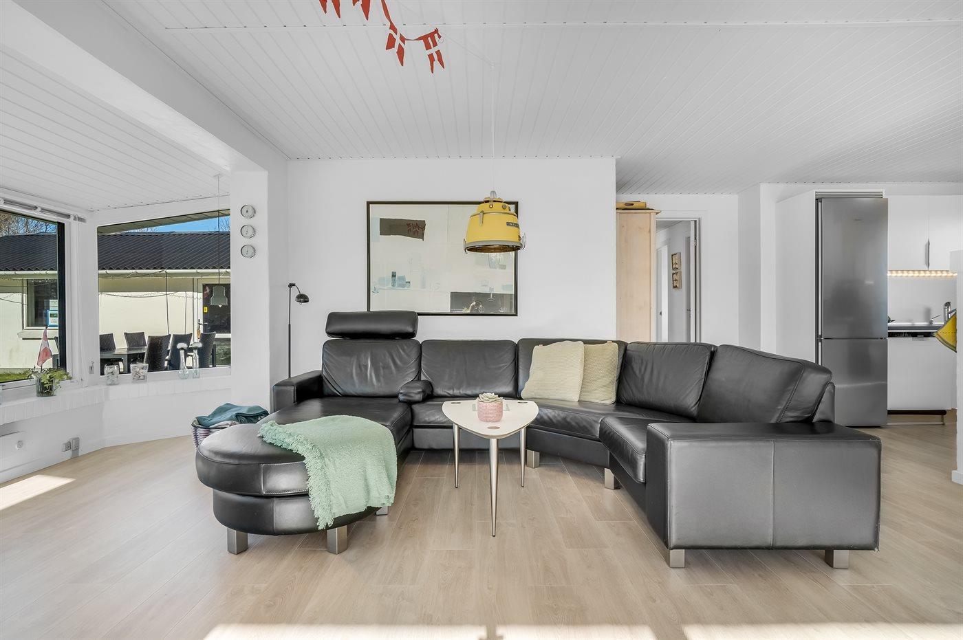 Flot sommerhus i Bratten med stor terrasse, naturgrund og tæt på strand og hyggelig fiskerihavn.