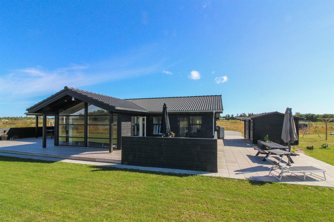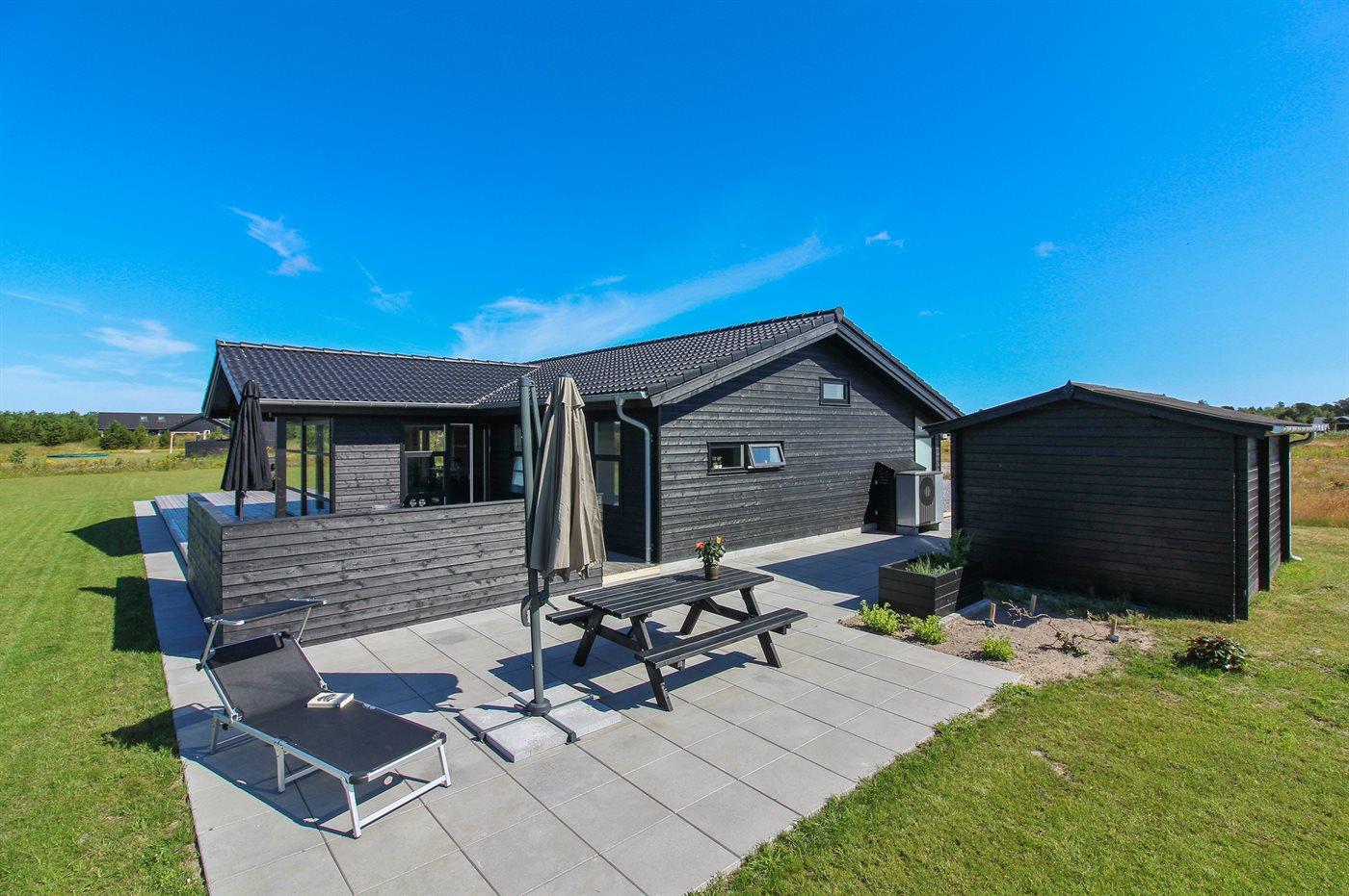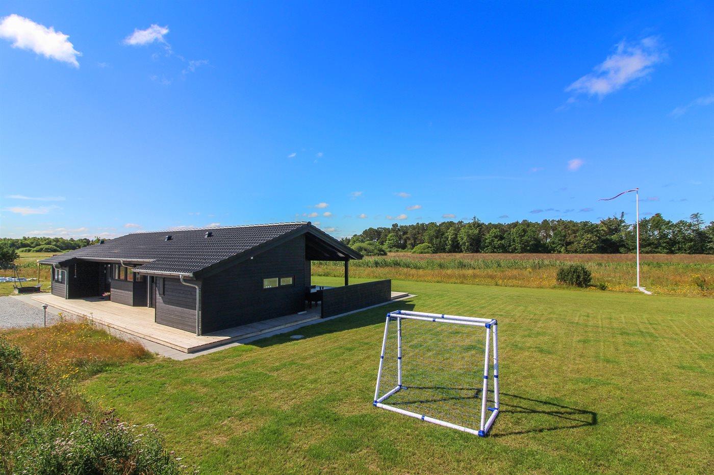 Ferieboligen er beliggende på en 3523 m² stor naturgrund. Der er 900 m til havet. Der er en sø i en afstand af 70 m. Nærmeste forretning er beliggende i en afstand af 4000 m. Til ferieboligen hører 90 m² terrasseareal. Desuden er der 12 m² overdækket terrasse. Der er redskabsrum. Gynge. Sandkasse. Fodboldmål. Der ligger en legeplads i en afstand af 900 m. Bålsted. Grill til rådighed. Der er installeret stik til opladning af elbil. Parkering ved ferieboligen.