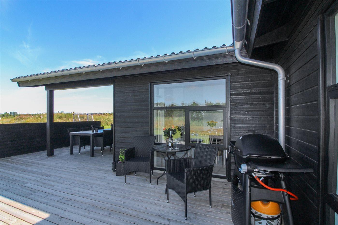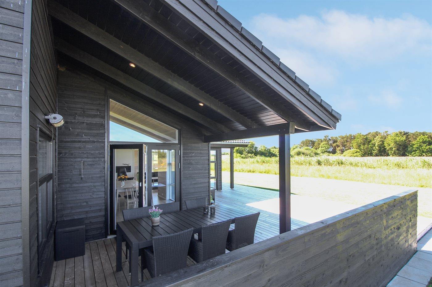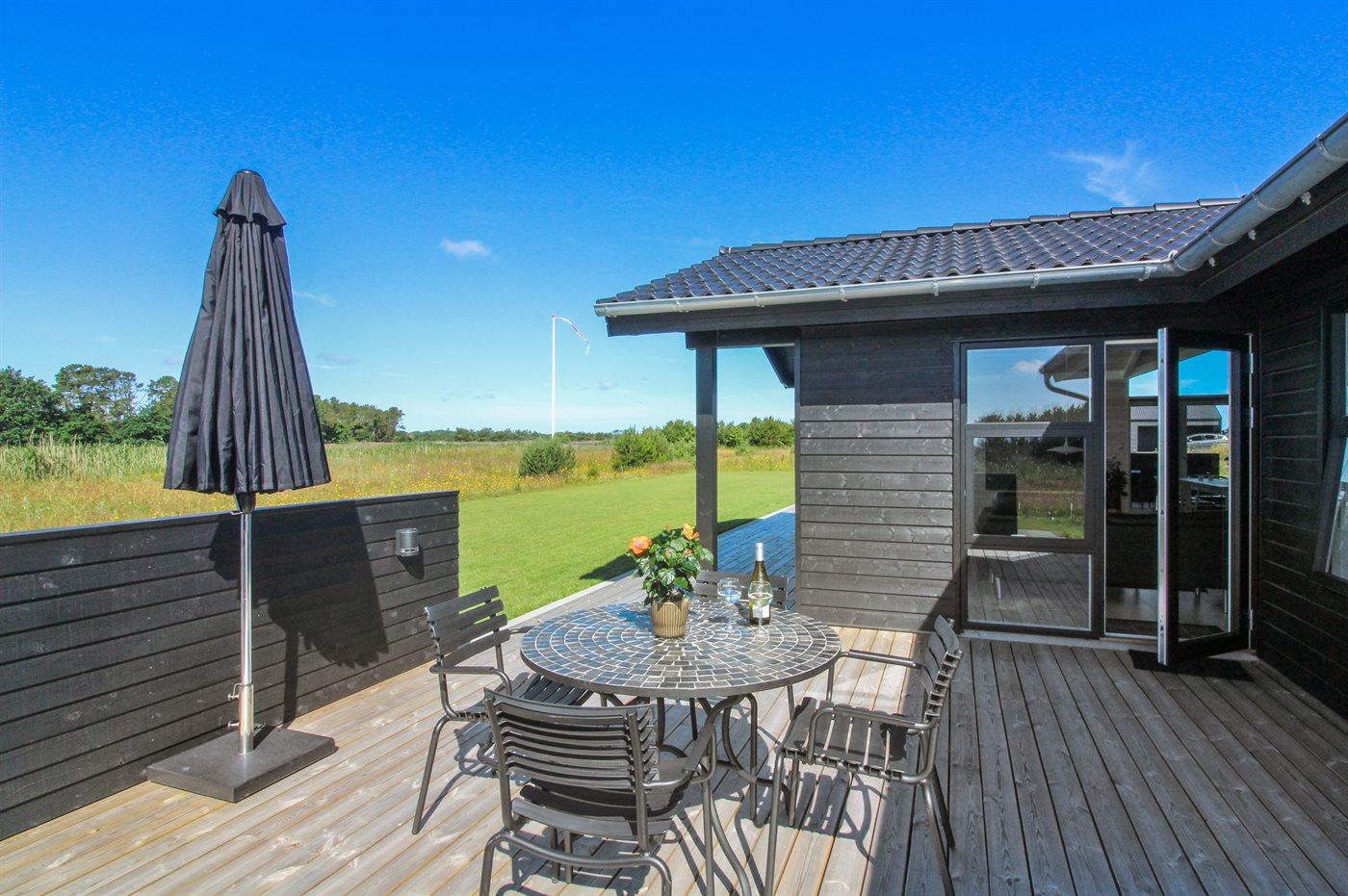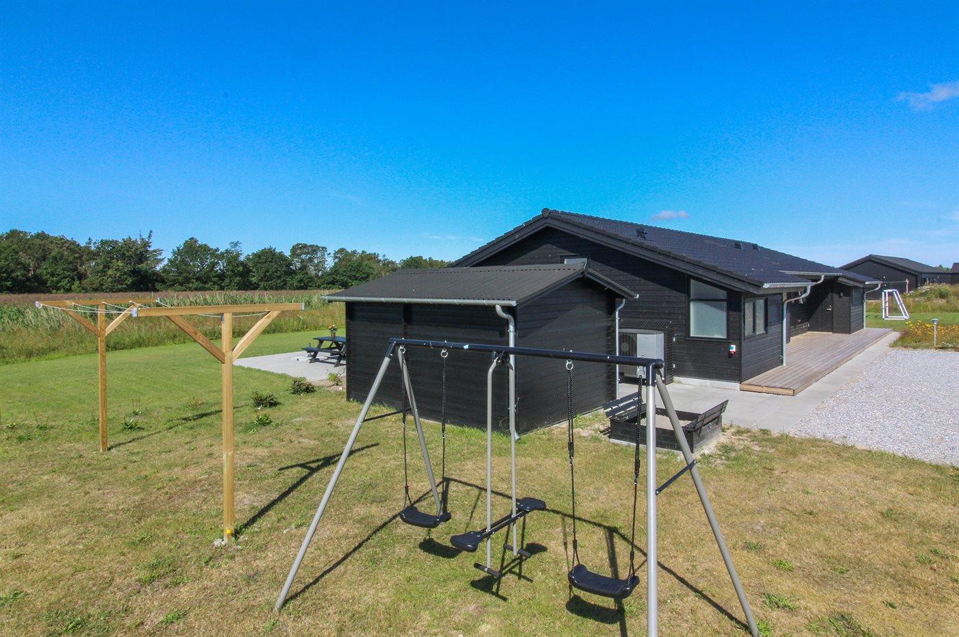 Ferieboligen er beliggende på en 3523 m² stor naturgrund. Der er 900 m til havet. Der er en sø i en afstand af 70 m. Nærmeste forretning er beliggende i en afstand af 4000 m. Til ferieboligen hører 90 m² terrasseareal. Desuden er der 12 m² overdækket terrasse. Der er redskabsrum. Gynge. Sandkasse. Fodboldmål. Der ligger en legeplads i en afstand af 900 m. Bålsted. Grill til rådighed. Der er installeret stik til opladning af elbil. Parkering ved ferieboligen.