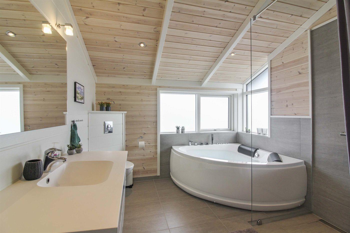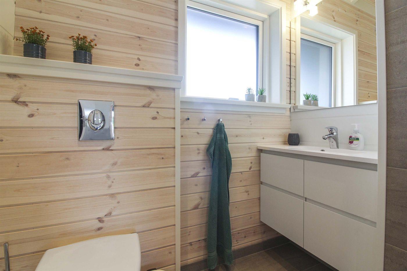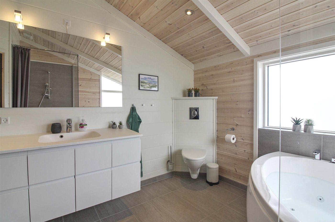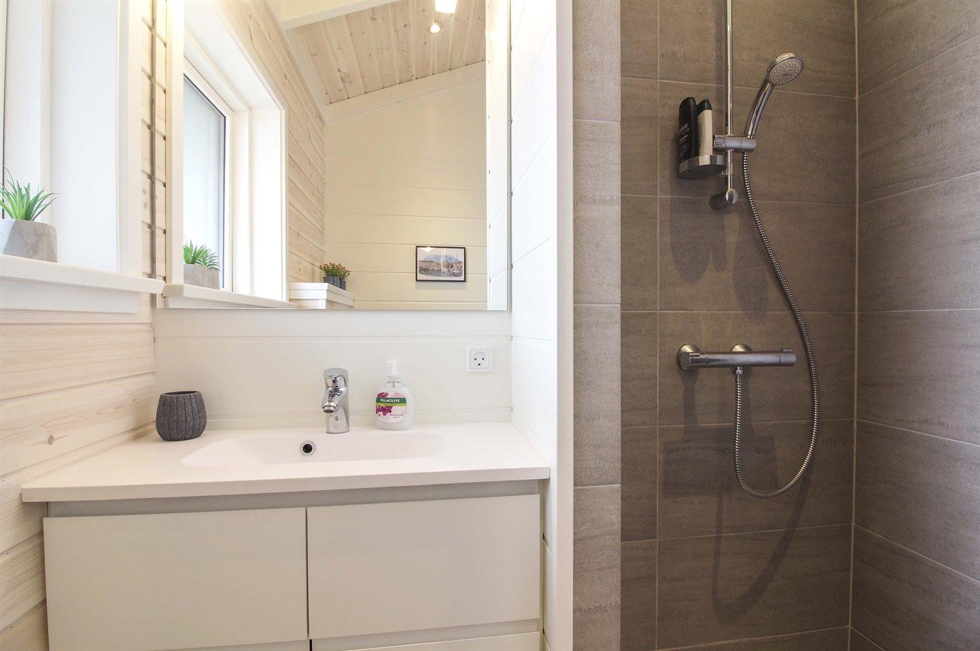 Der er 2 badeværelser med bruseniche og 2 toiletter. Der er gulvvarme på 2 badeværelser. I saunaen er der mulighed for afslapning.