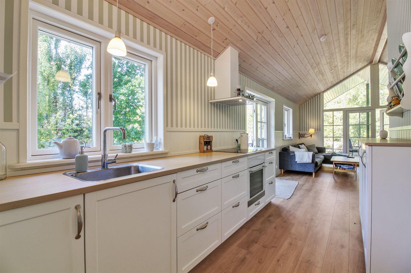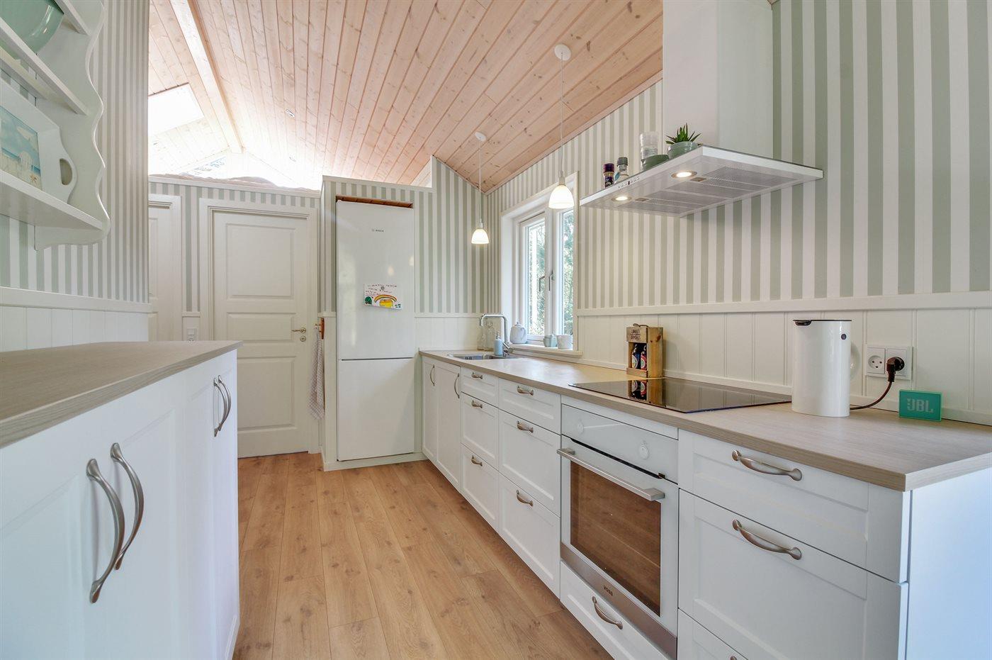 Køkkenet er udstyret med 1 køleskab. Der er 4 induktionskogeplader, varmluftovn samt opvaskemaskine.