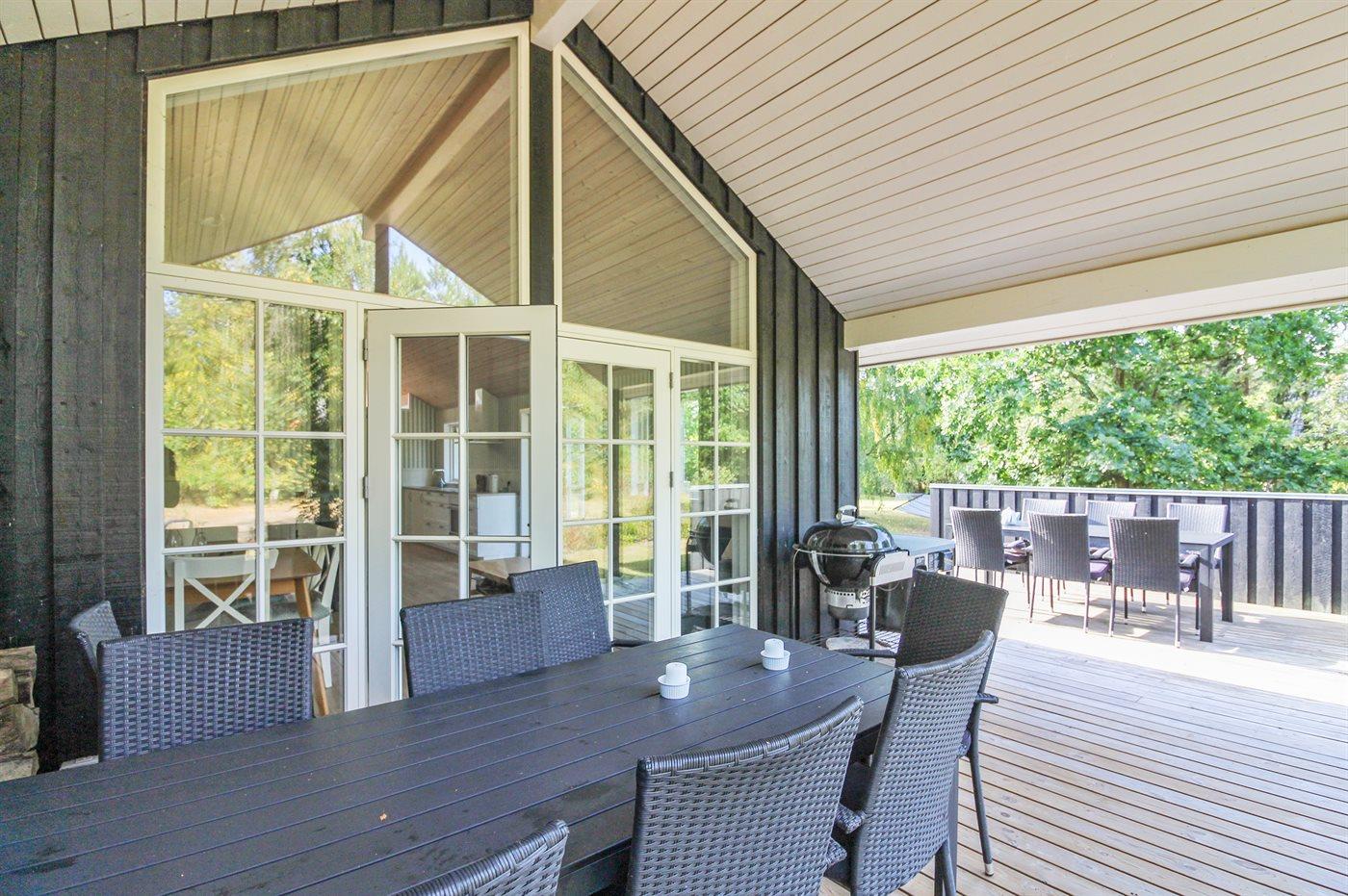 Ferieboligen er beliggende på en 2500 m² stor naturgrund. Der er 600 m til havet. Nærmeste forretning er beliggende i en afstand af 2000 m. Til ferieboligen hører åbent terrasseareal. Desuden er der overdækket terrasse. Grill til rådighed. Parkering ved ferieboligen.