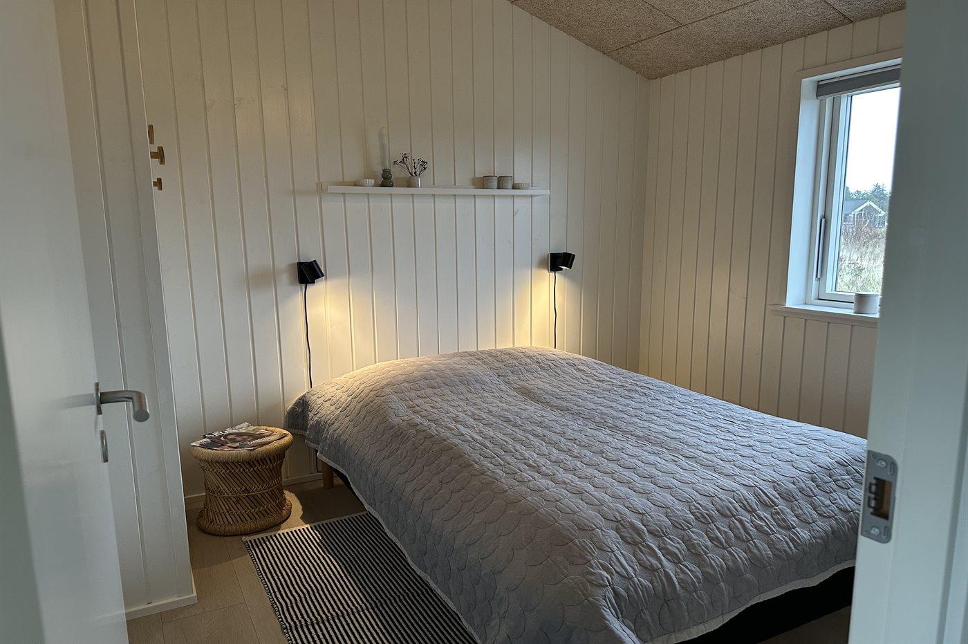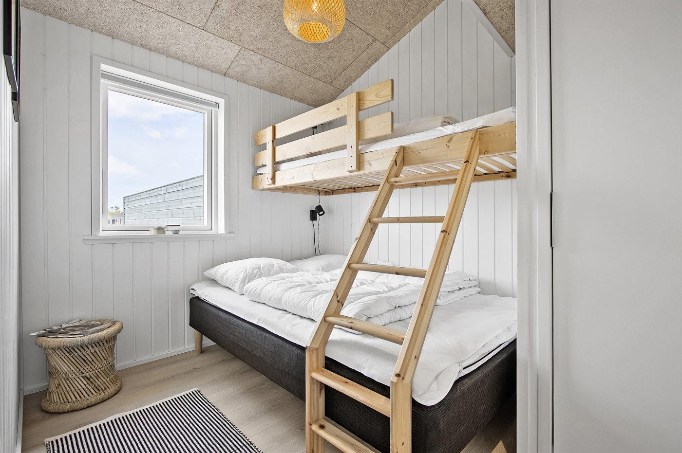 Der er i alt 3 soveværelser. Sovepladserne fordeler sig på: 6 sovepladser i dobbeltsenge.1 soveplads i køjeseng. Derudover er der 1 stk. barneseng.