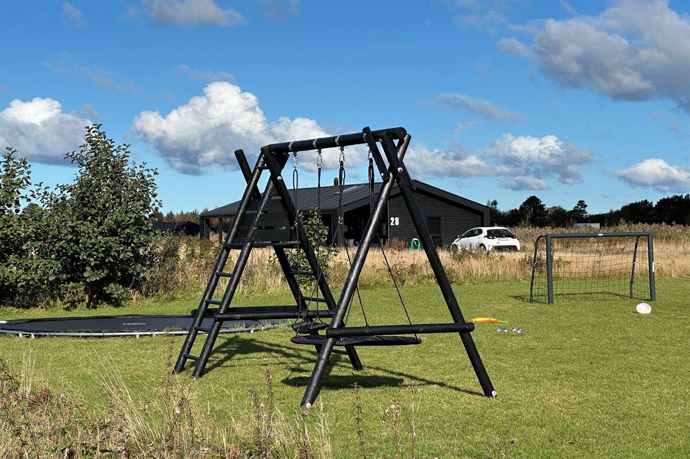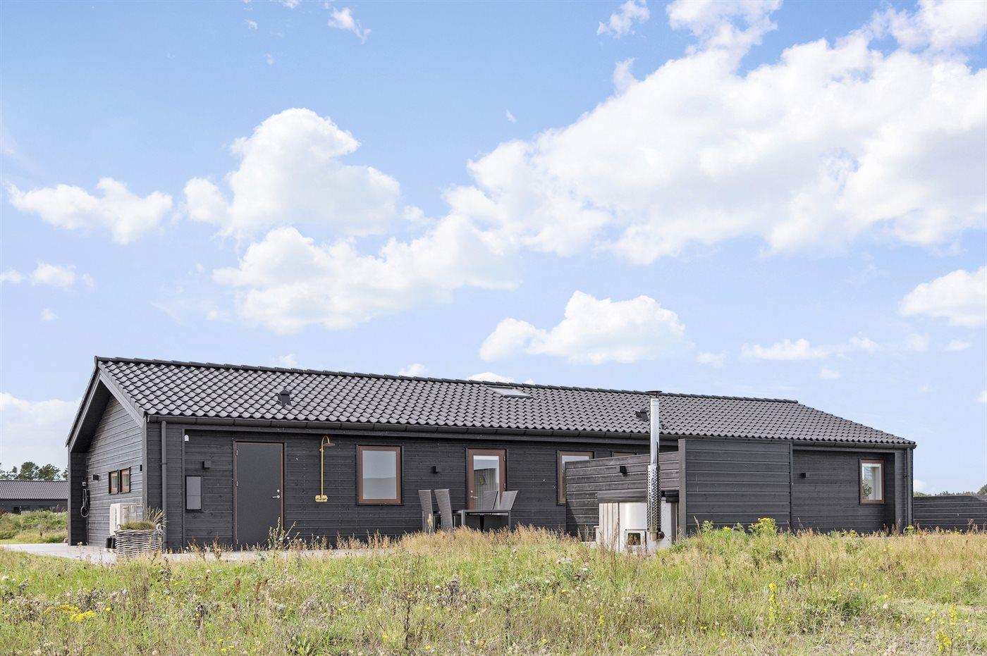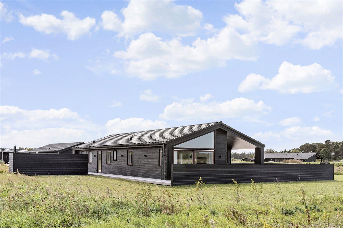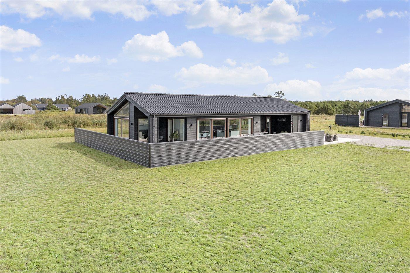Ferieboligen er beliggende på en 2594 m² stor naturgrund. Der er 900 m til havet. Nærmeste forretning er beliggende i en afstand af 4000 m. Til ferieboligen hører åbent terrasseareal. Desuden er der overdækket terrasse. Der er redskabsrum. Gynge. Trampolin. Fodboldmål. Udendørs bruser. Grill til rådighed. Der er installeret stik til opladning af elbil. Med 11 kW ladeeffekt. Parkering ved ferieboligen.