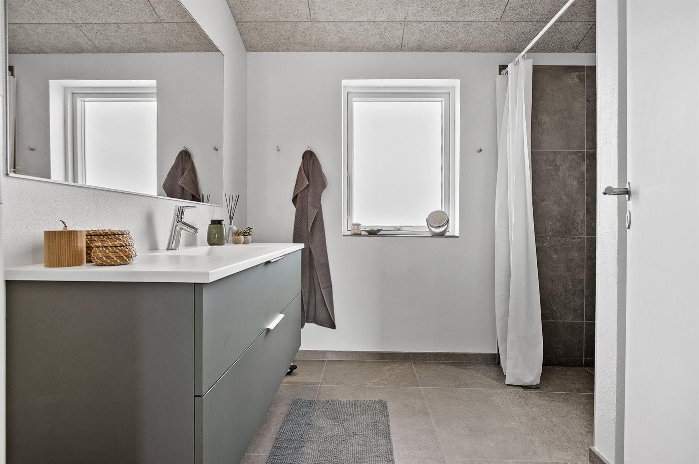 Der er 2 badeværelser med bruseniche og 2 toiletter. Der er gulvvarme på 2 badeværelser.