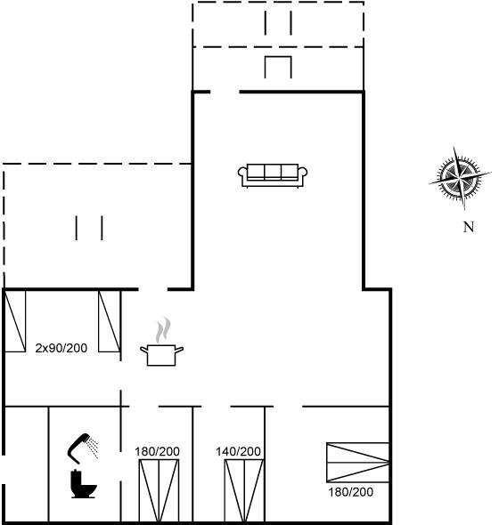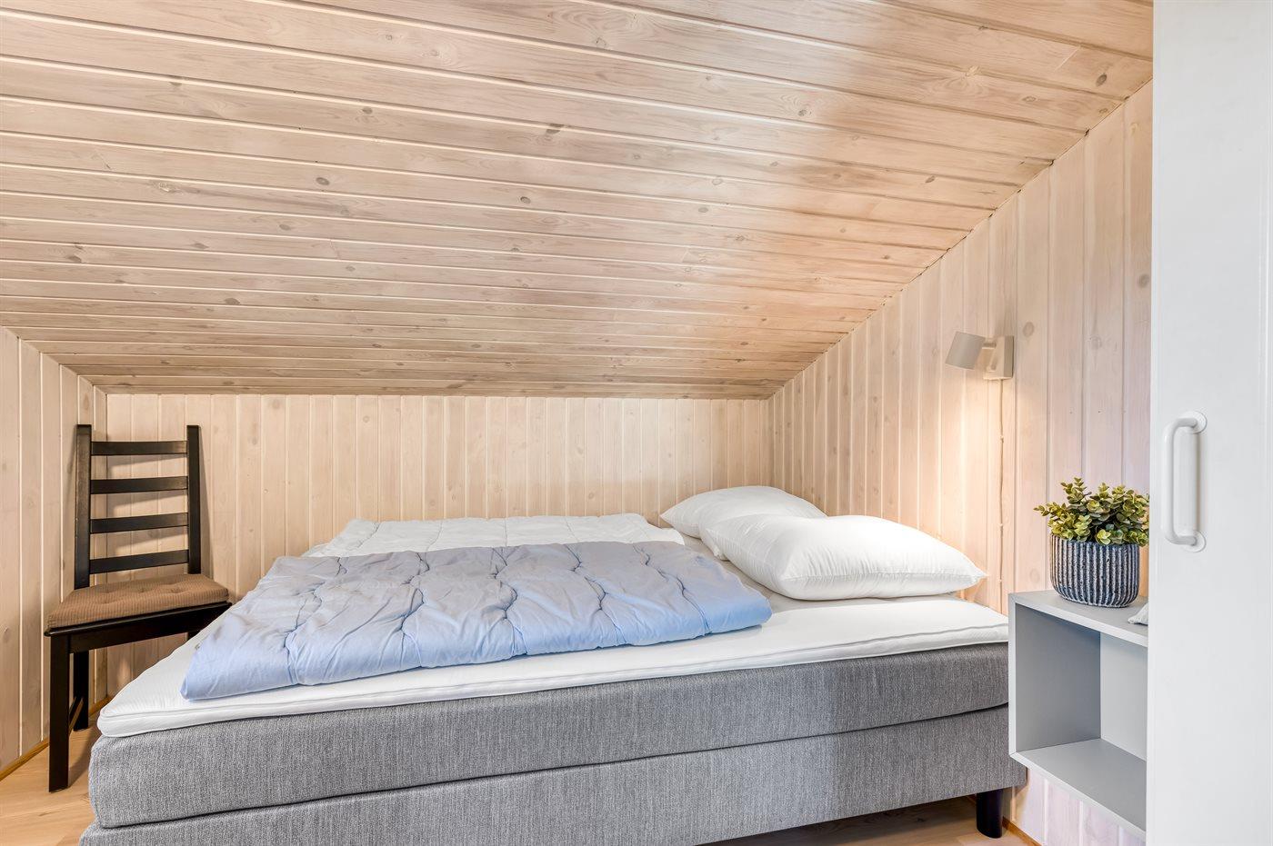 Der er i alt 4 soveværelser. Sovepladserne fordeler sig på: 6 sovepladser i dobbeltsenge. 2 sovepladser i enkeltsenge. Derudover er der 1 stk. barneseng.