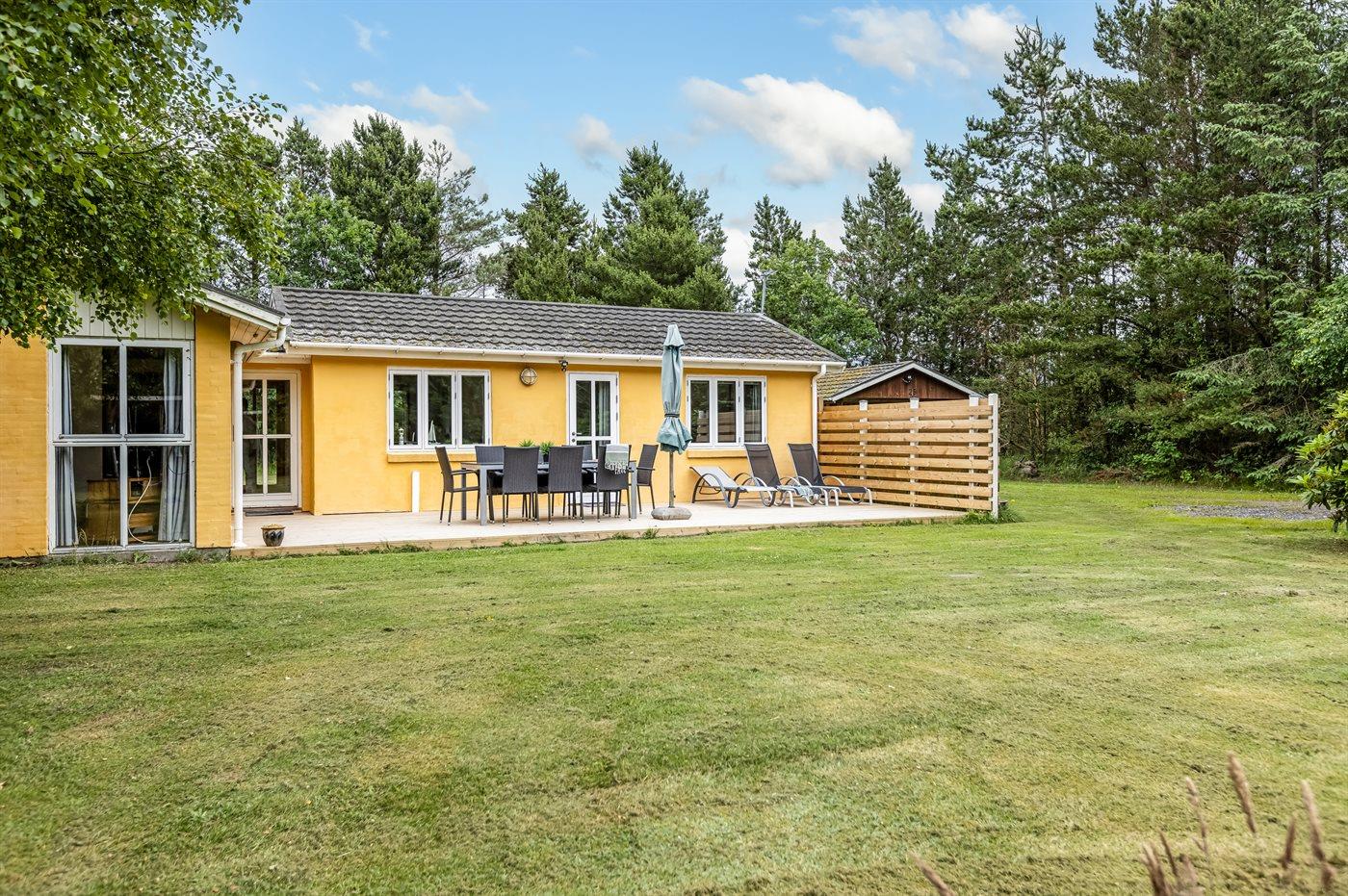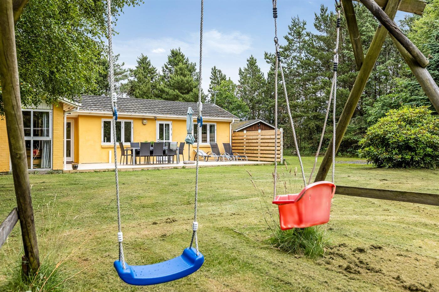 Ferieboligen er beliggende på en 2600 m² stor naturgrund. Der er 200 m til havet. Nærmeste forretning er beliggende i en afstand af 900 m. Til ferieboligen hører åbent terrasseareal. Der er redskabsrum. Gynge. Sandkasse. Grill til rådighed. Der er carport til rådighed. Der er installeret stik til opladning af elbil. CEE stik. Parkering ved ferieboligen.