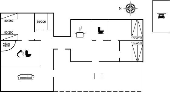 Der er i alt 4 soveværelser. Sovepladserne fordeler sig på: 4 sovepladser i dobbeltsenge. 2 sovepladser i enkeltsenge. 2 sovepladser i køjeseng. Derudover er der 1 stk. barneseng.