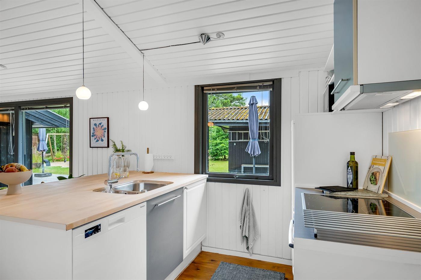 Køkkenet er udstyret med 1 køleskab. Der er 4 induktionskogeplader, varmluftovn, mikrobølgeovn samt opvaskemaskine.
