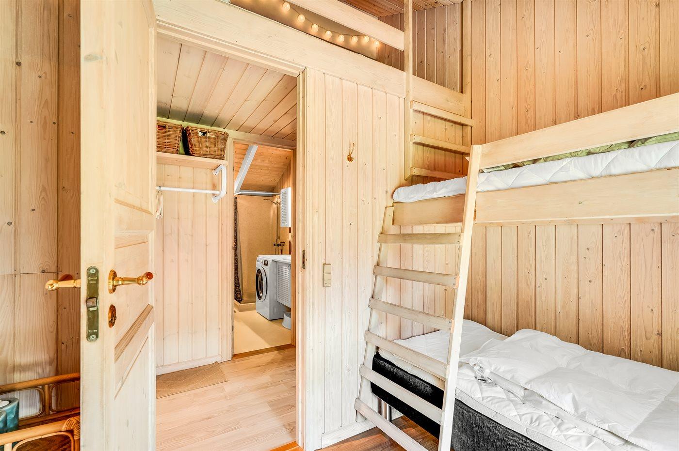 Der er i alt 3 soveværelser. Sovepladserne fordeler sig på: 2 sovepladser i dobbeltseng. 3 sovepladser i enkeltsenge. 2 sovepladser i køjeseng. 2 af disse sovepladser befinder sig på husets hems. Derudover er der 1 stk. barneseng.