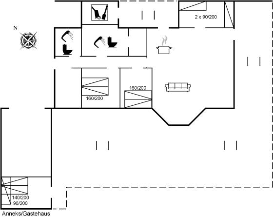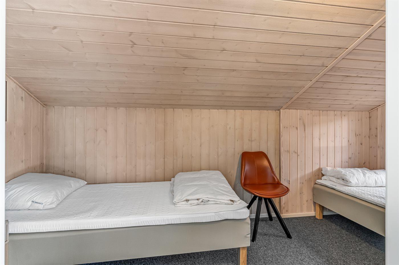 Der er i alt 4 soveværelser. Sovepladserne fordeler sig på: 4 sovepladser i dobbeltsenge. 2 sovepladser i enkeltsenge. 3 sovepladser i køjesenge. 2 af disse sovepladser befinder sig i anneks. Derudover er der 1 stk. barneseng.