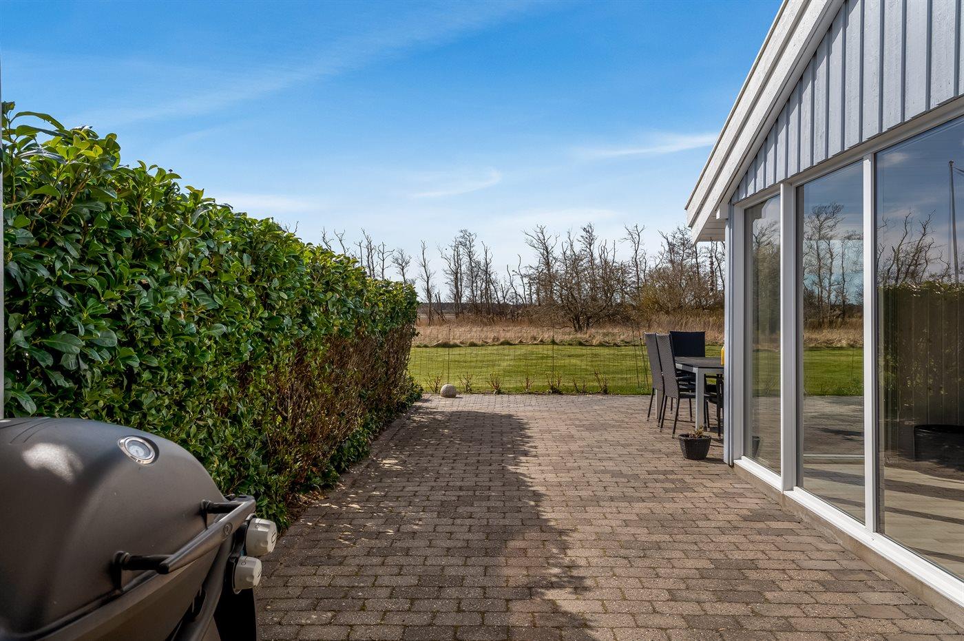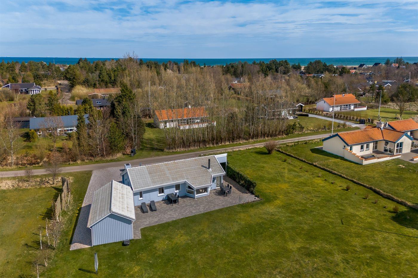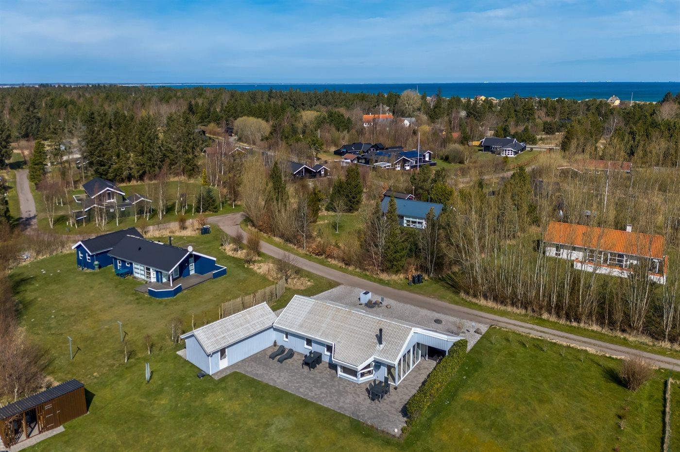 Ferieboligen er beliggende på en 1463 m² stor naturgrund. Der er 400 m til havet. Nærmeste forretning er beliggende i en afstand af 2000 m. Til ferieboligen hører åbent terrasseareal. Desuden er der overdækket terrasse. Der er redskabsrum. Grill til rådighed. Parkering ved ferieboligen.
