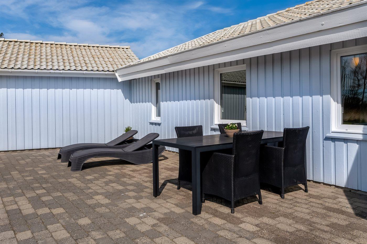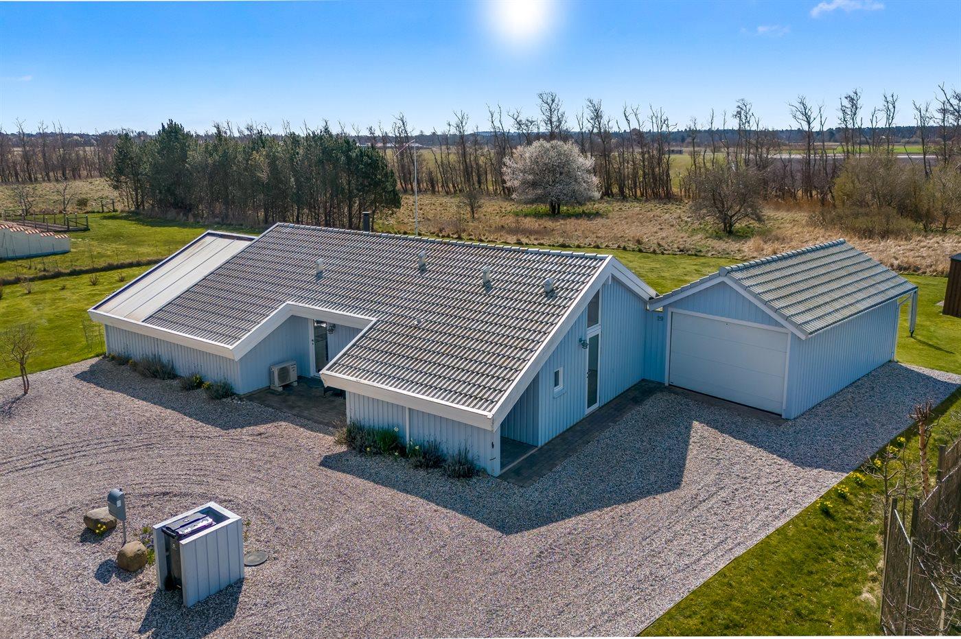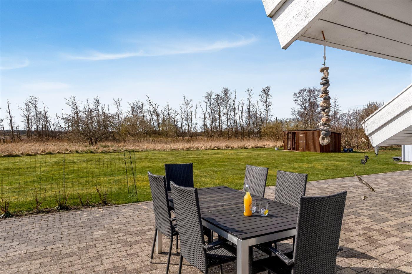 Ferieboligen er beliggende på en 1463 m² stor naturgrund. Der er 400 m til havet. Nærmeste forretning er beliggende i en afstand af 2000 m. Til ferieboligen hører åbent terrasseareal. Desuden er der overdækket terrasse. Der er redskabsrum. Grill til rådighed. Parkering ved ferieboligen.