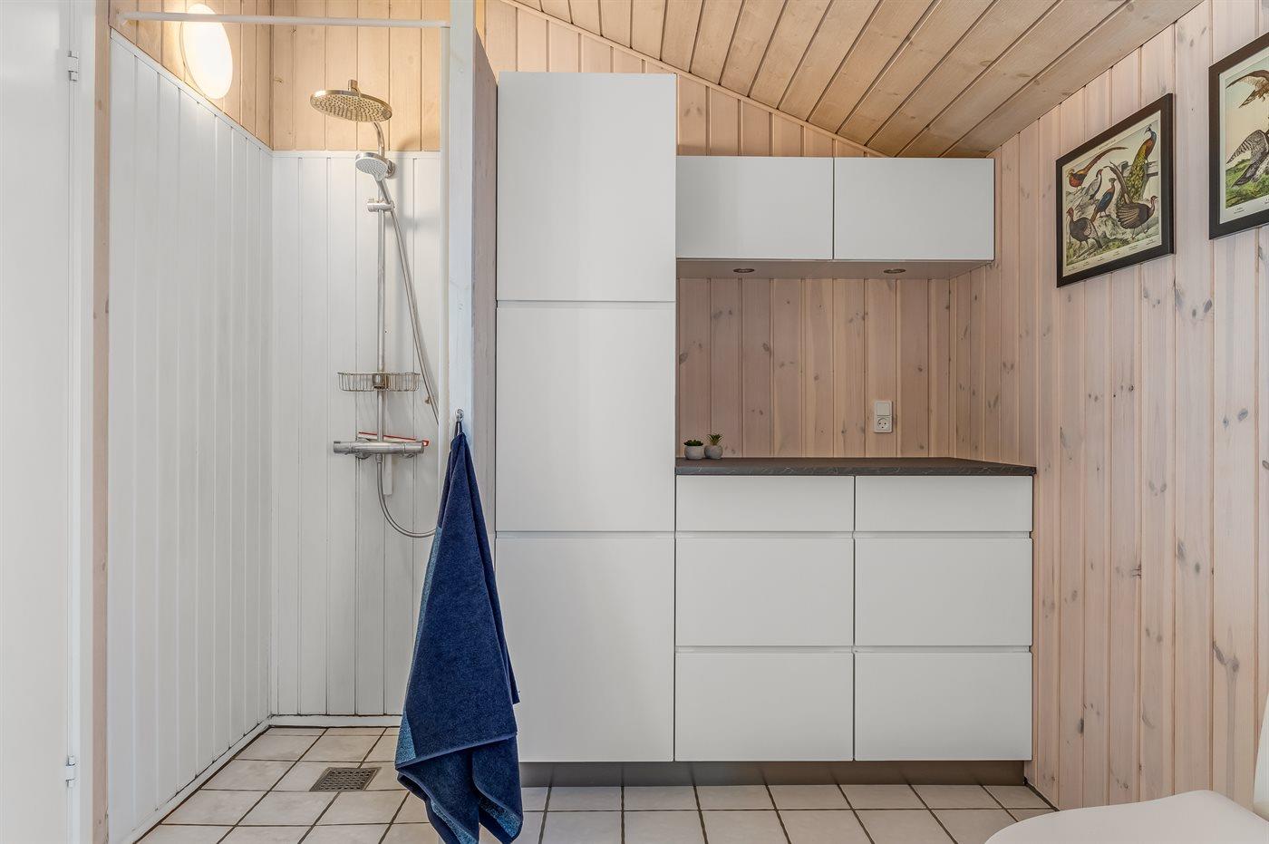 Der er 2 badeværelser med bruseniche og 2 toiletter. Der er gulvvarme på 2 badeværelser.