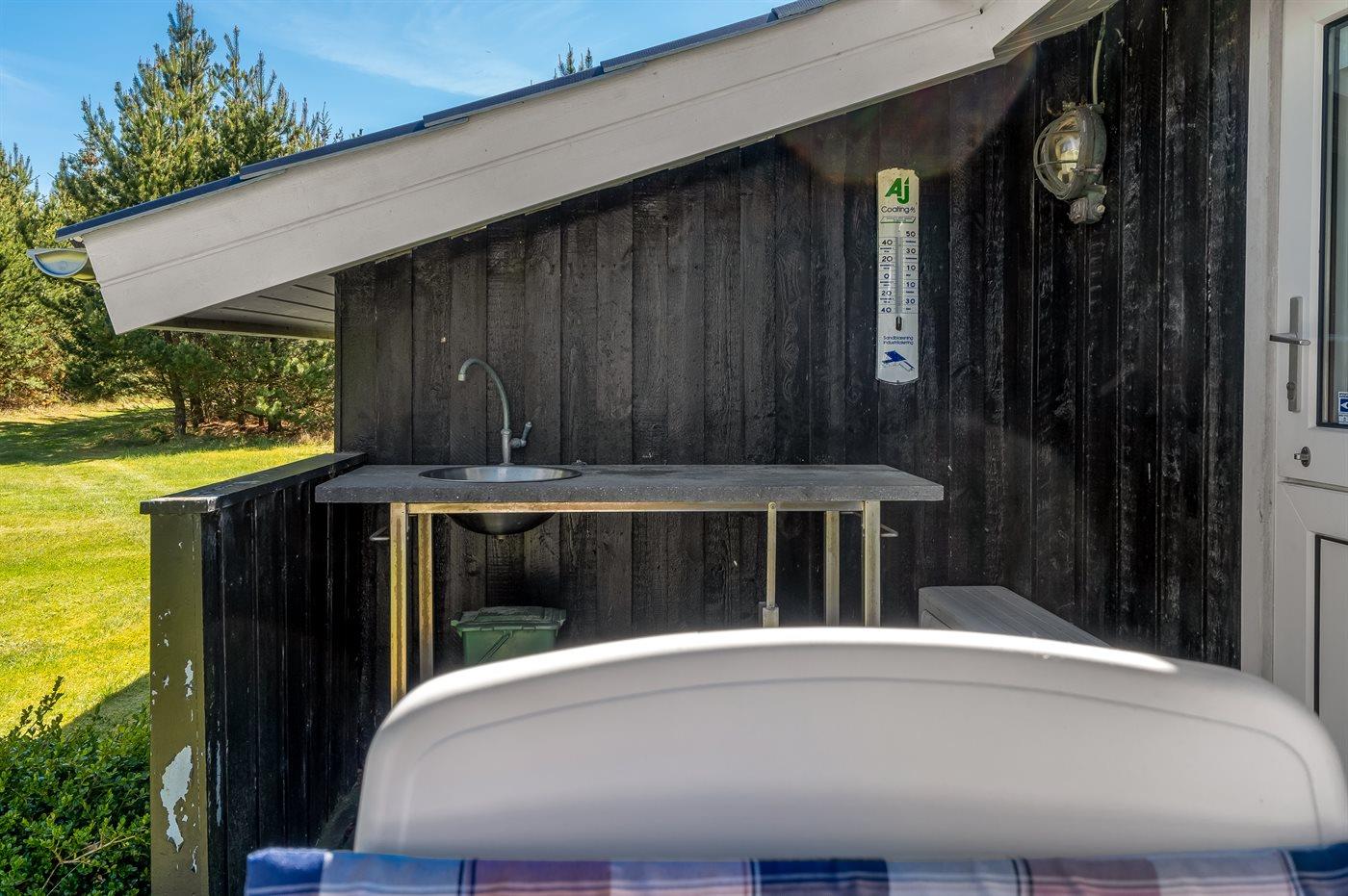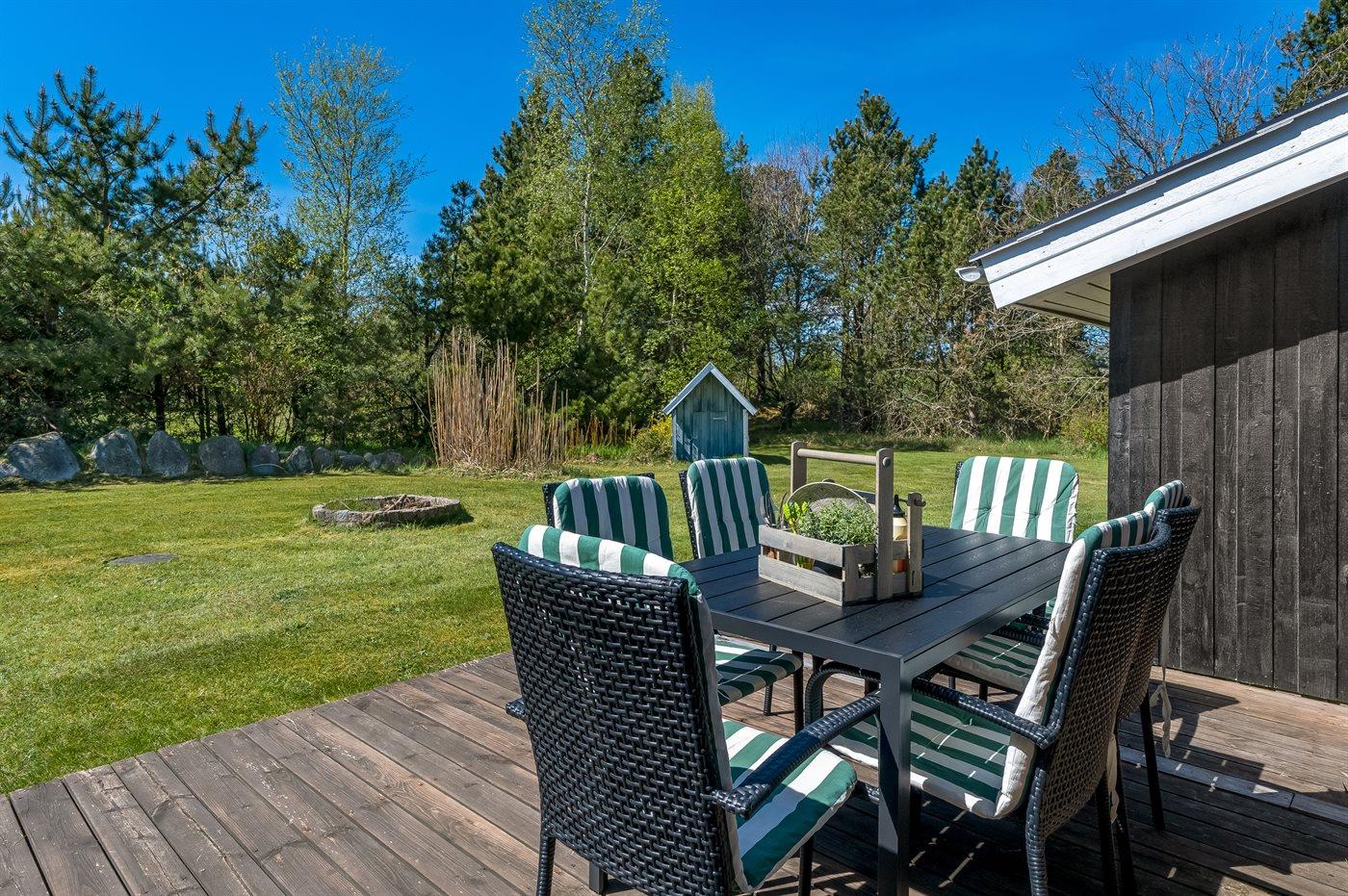 Ferieboligen er beliggende på en 3061 m² stor naturgrund. Der er 400 m til havet. Nærmeste forretning er beliggende i en afstand af 4000 m. Til ferieboligen hører åbent terrasseareal. Ligeledes er der adgang til udestue. Grill til rådighed. Der er carport til rådighed. Parkering ved ferieboligen.