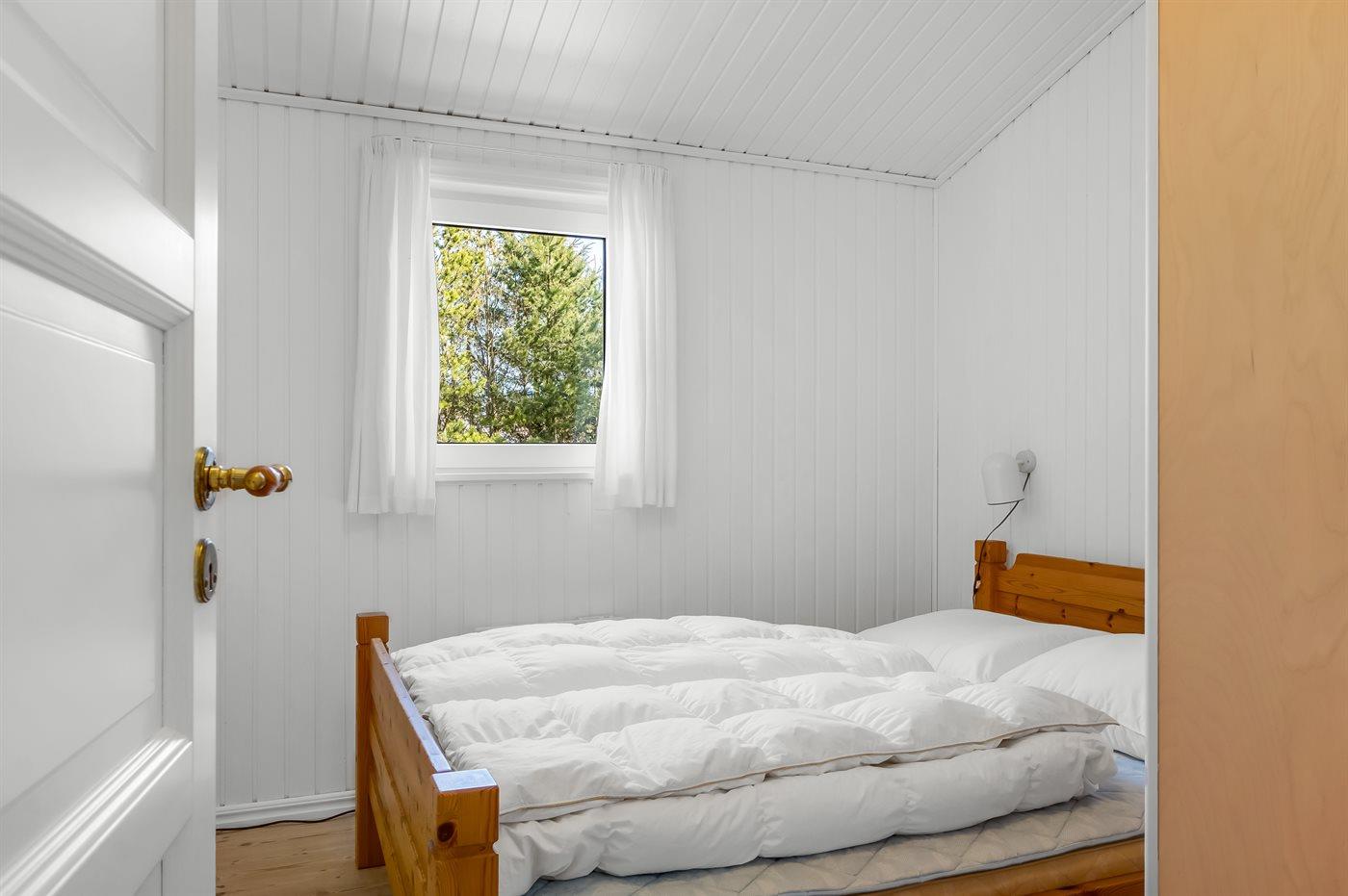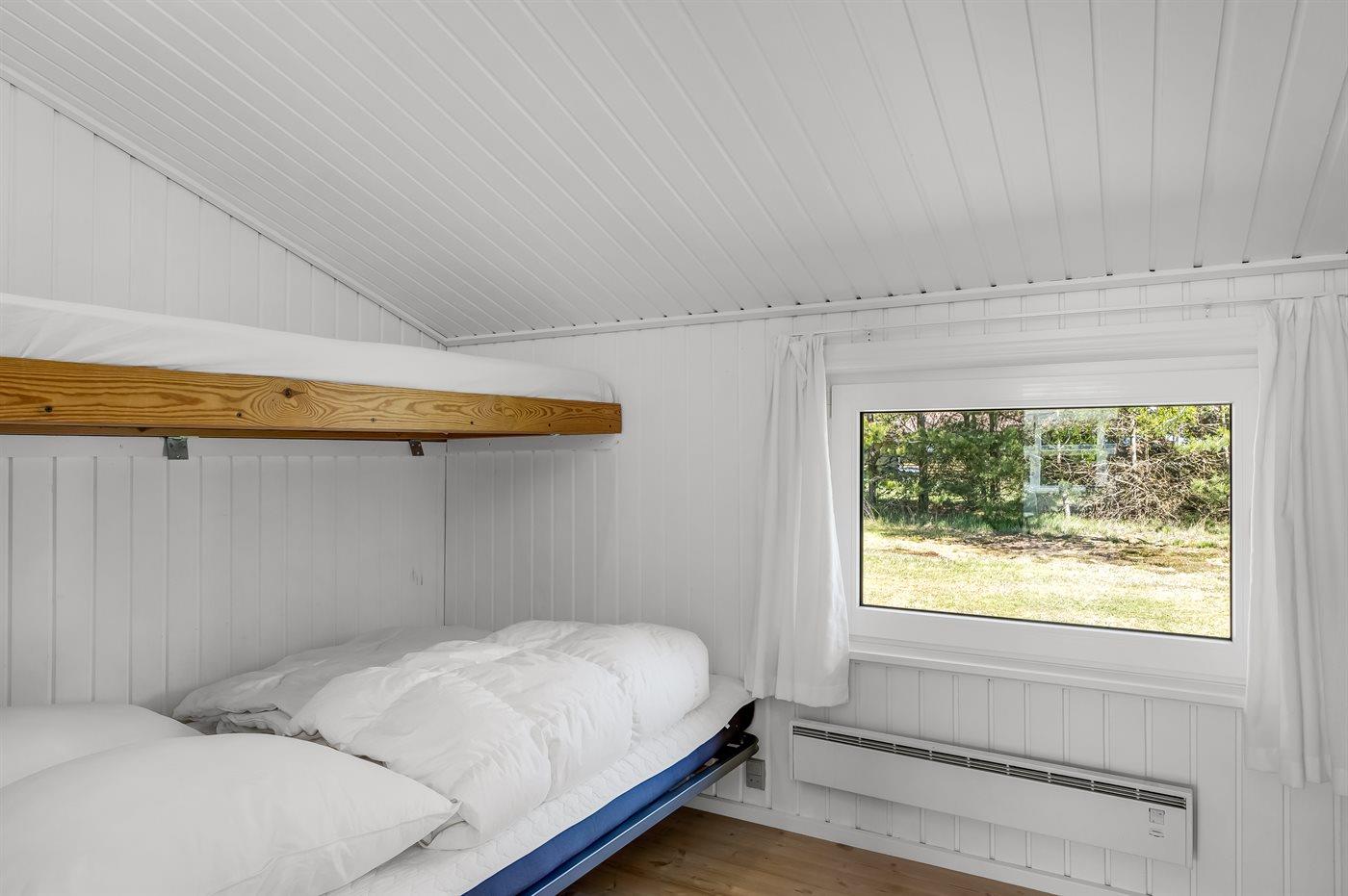 Der er i alt 3 soveværelser. Sovepladserne fordeler sig på: 4 sovepladser i dobbeltsenge. 2 sovepladser i køjeseng. Derudover er der 1 stk. barneseng.