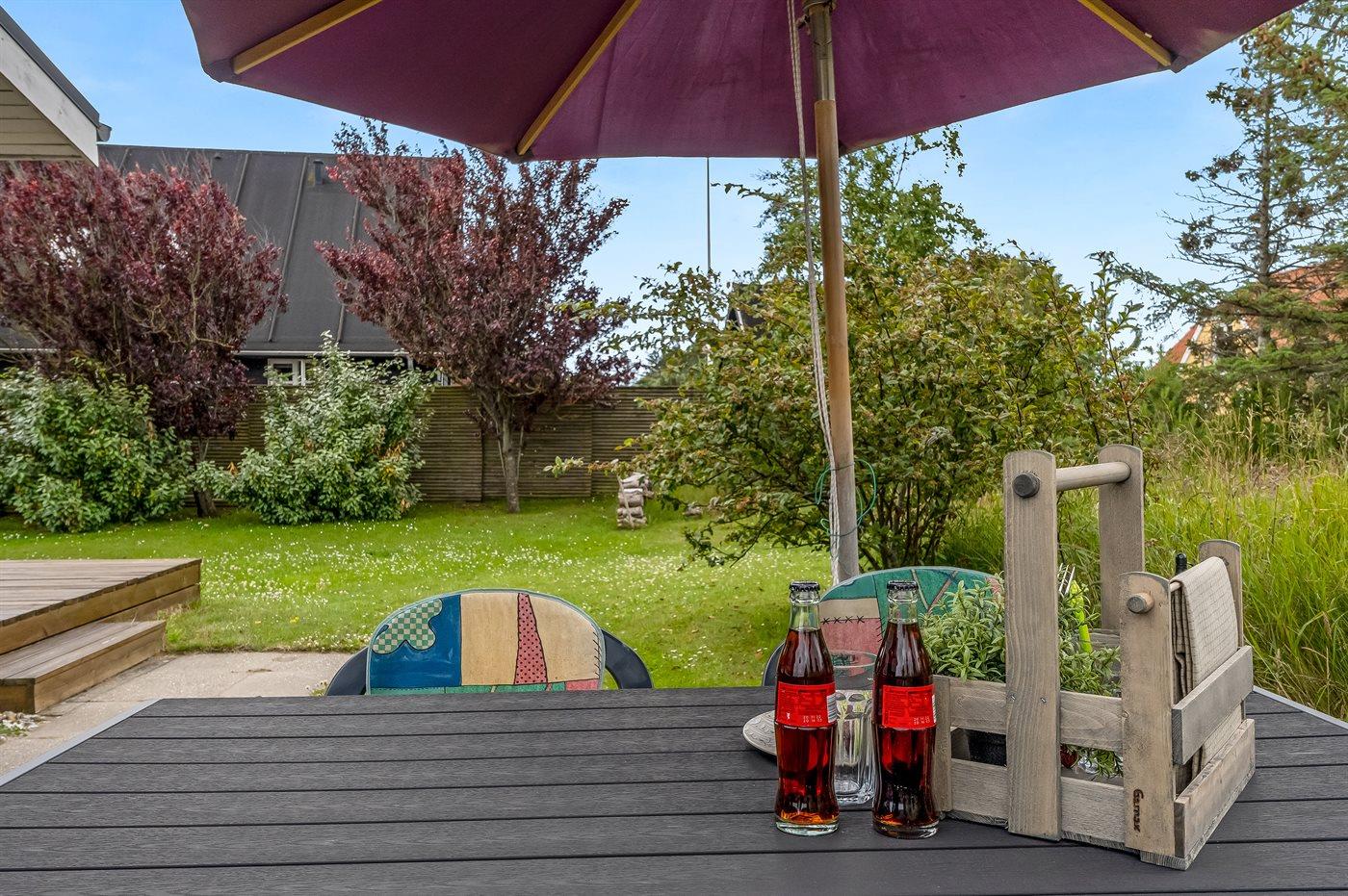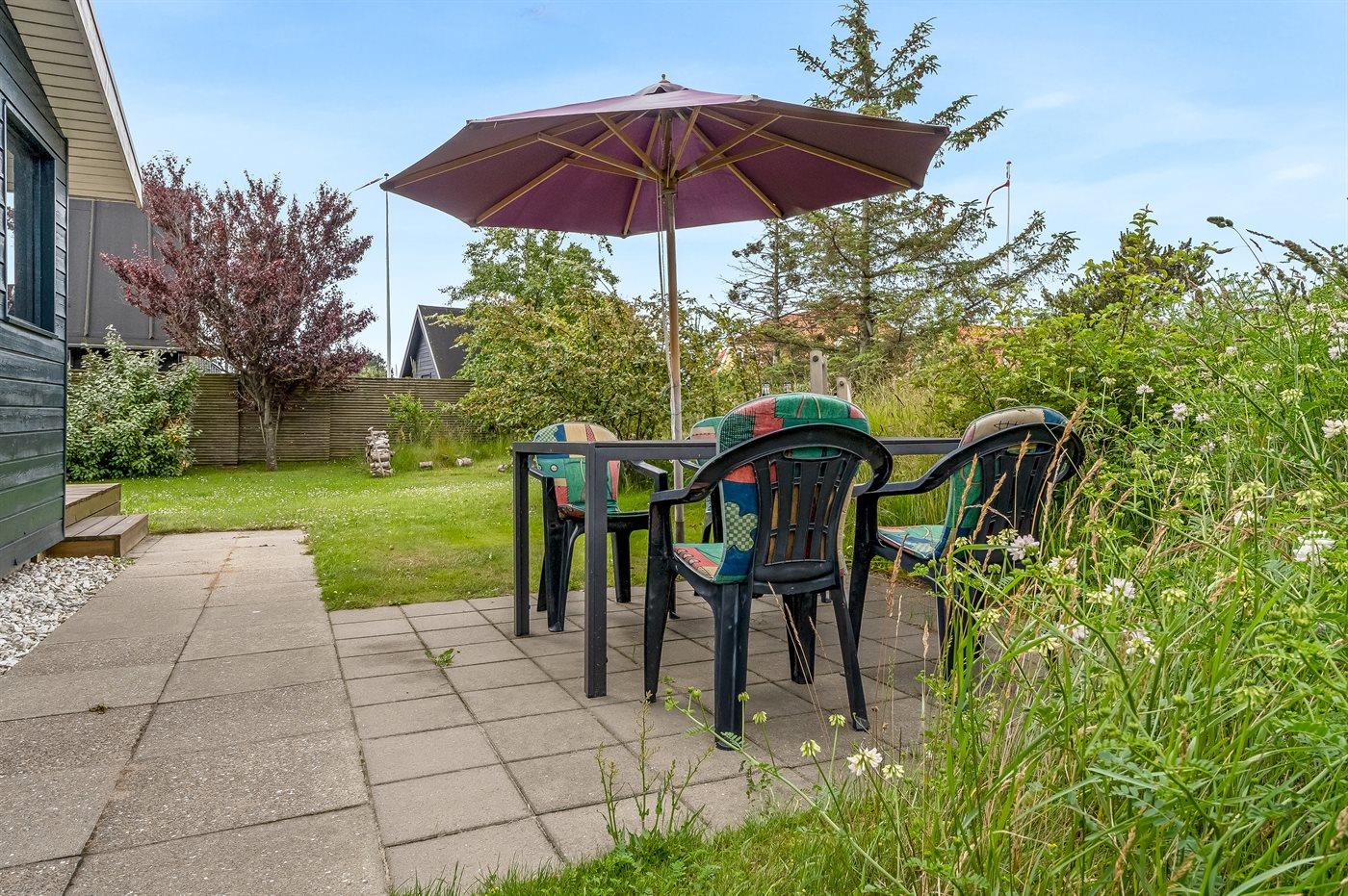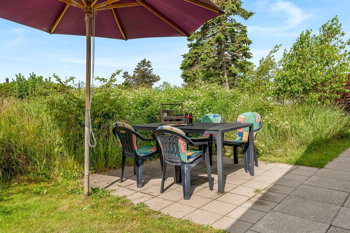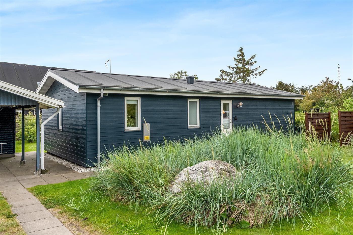 Ferieboligen er beliggende på en 700 m² stor naturgrund. Der er 100 m til havet. Nærmeste forretning er beliggende i en afstand af 1100 m. Til ferieboligen hører åbent terrasseareal. Desuden er der overdækket terrasse. Grill til rådighed. Der er carport til rådighed. Parkering ved ferieboligen.