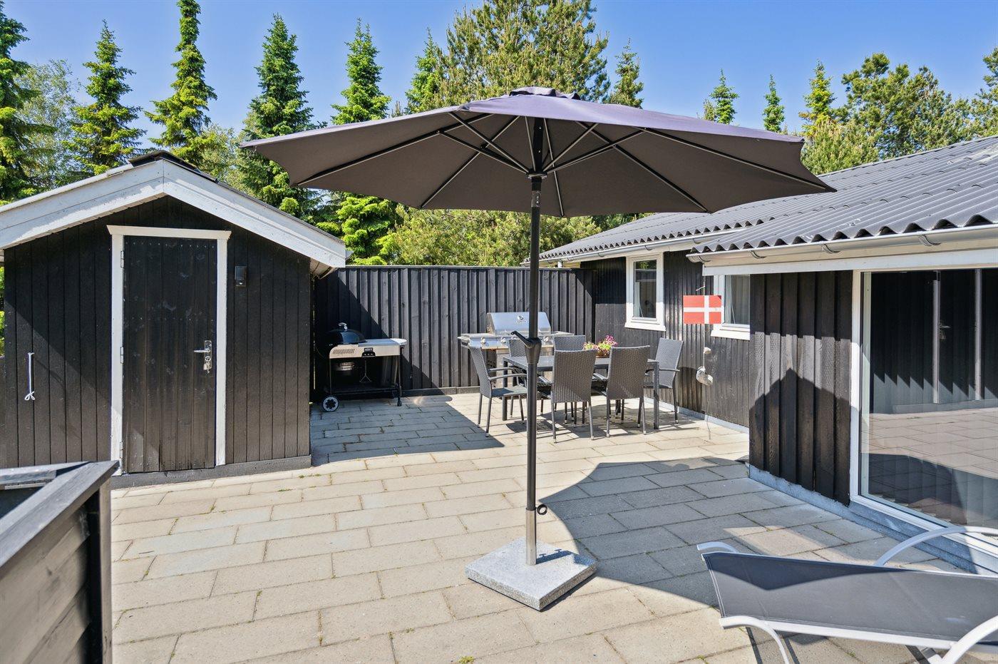 Ferieboligen er beliggende på en 2550 m² stor naturgrund. Der er 250 m til havet. Nærmeste forretning er beliggende i en afstand af 600 m. Til ferieboligen hører 50 m² lukket terrasse. Der er redskabsrum. Gynge. Sandkasse. Parkering ved ferieboligen.