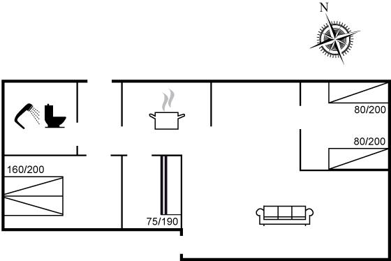 Der er i alt 3 soveværelser. Sovepladserne fordeler sig på: 2 sovepladser i dobbeltseng. 2 sovepladser i enkeltsenge. 2 sovepladser i køjeseng. Derudover er der 1 stk. barneseng.