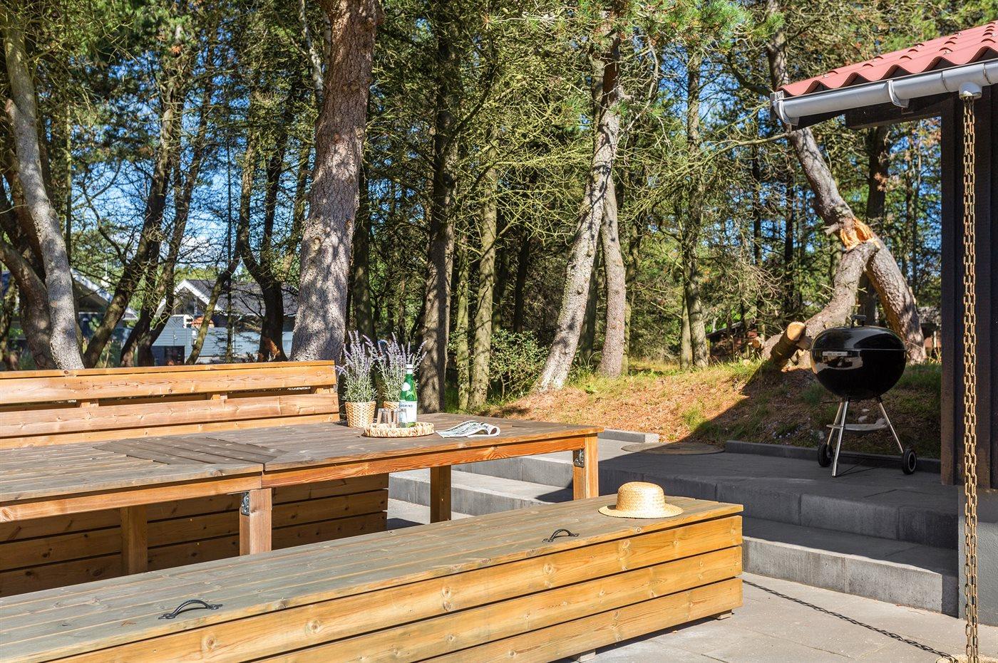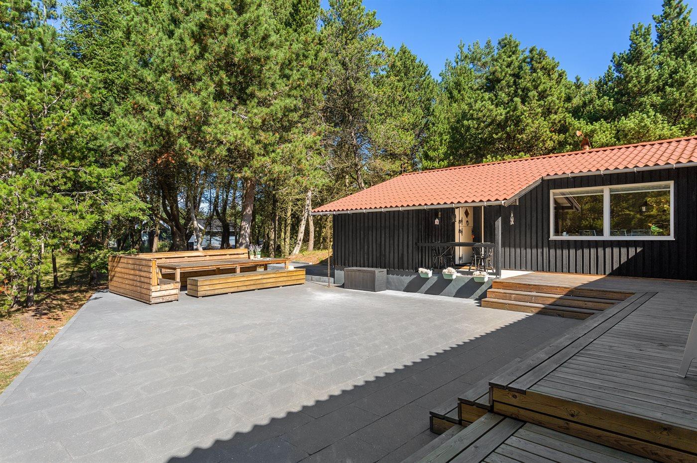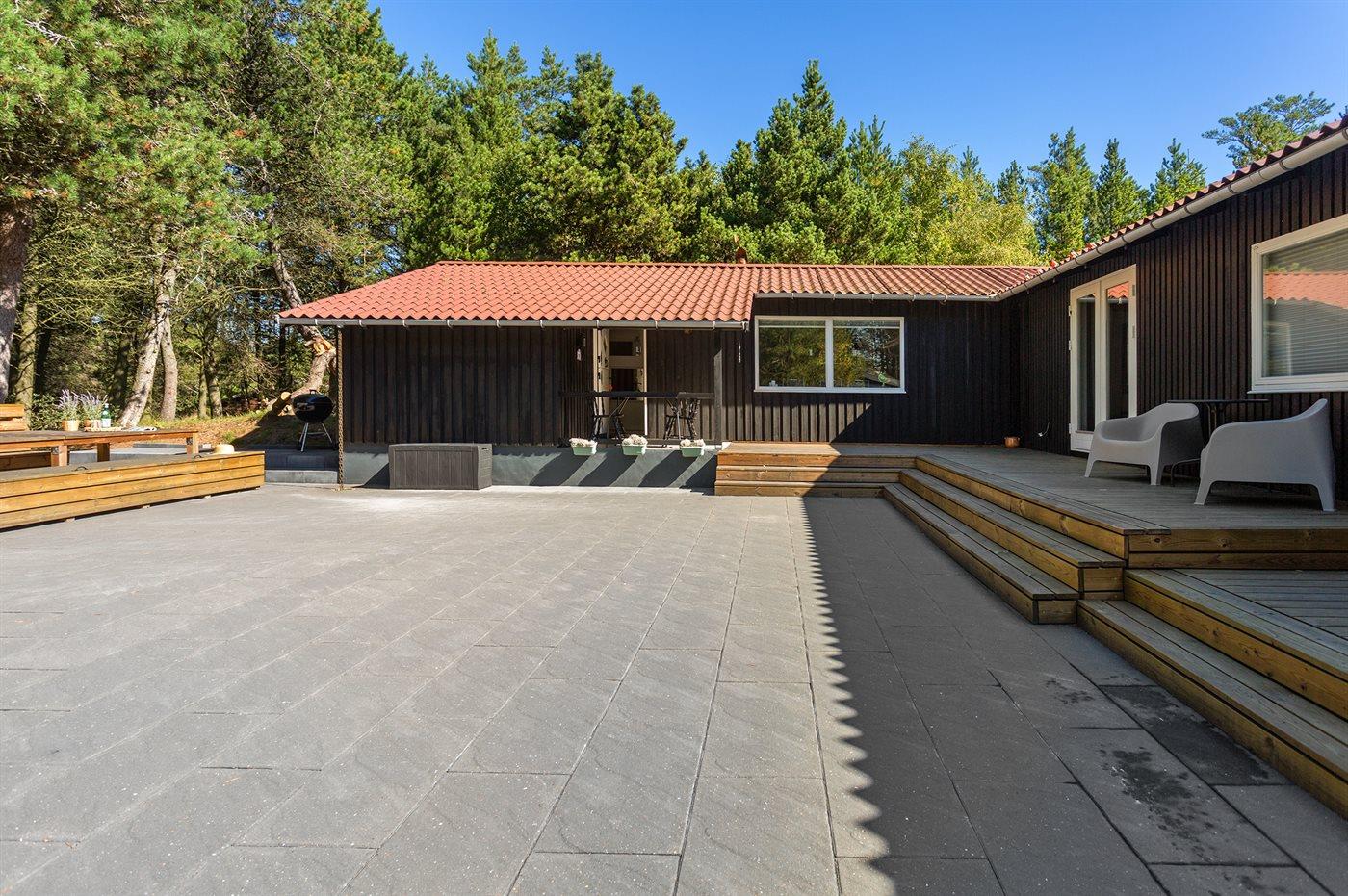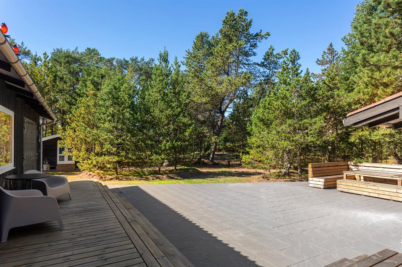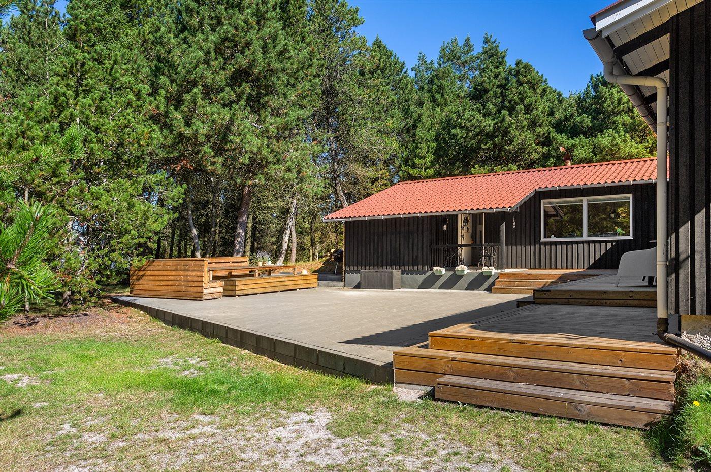 Ferieboligen er beliggende på en 3515 m² stor naturgrund. Der er 300 m til havet. Nærmeste forretning er beliggende i en afstand af 300 m. Til ferieboligen hører 50 m² terrasseareal. Desuden er der 10 m² overdækket terrasse. Parkering ved ferieboligen.