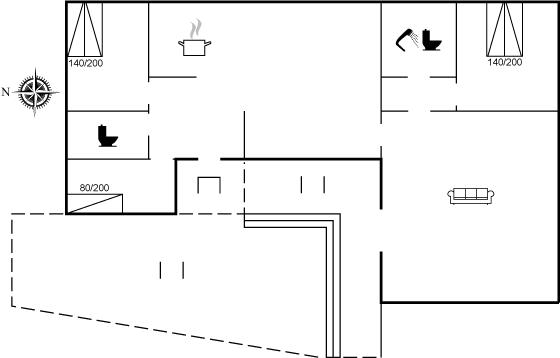 Der er i alt 3 soveværelser. Sovepladserne fordeler sig på: 4 sovepladser i dobbeltsenge. 1 soveplads i enkeltseng.