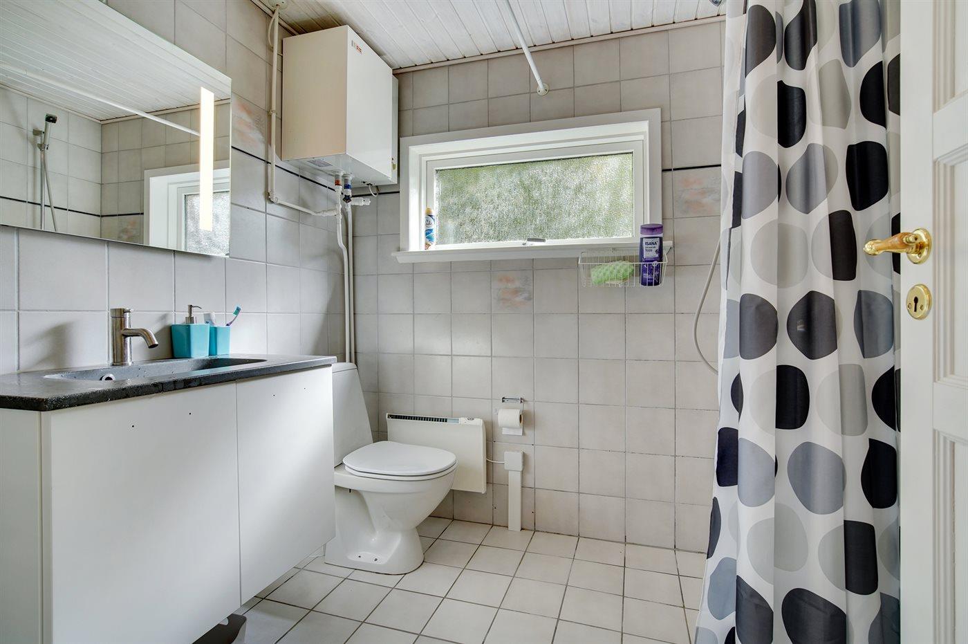 Der er 1 badeværelse med bruseniche og 2 toiletter, heraf 1 gæstetoilet.